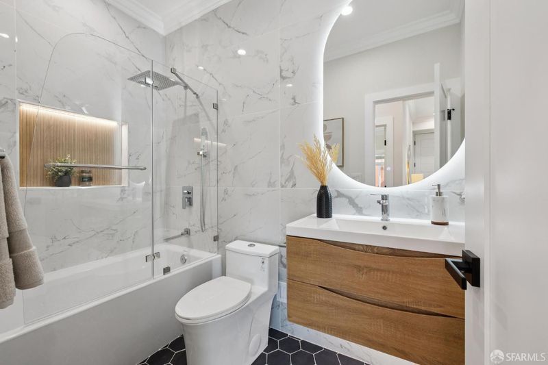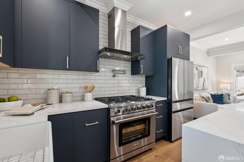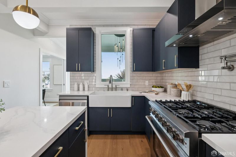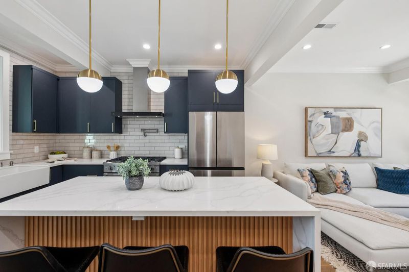 This charming, newly rebuilt home in sought-after Potrero Hill blends modern luxury with timeless appeal. Bathed in natural eastern light and boasting bay views, it features a flexible floor plan with 3-4 bedrooms and 4 full bathrooms. The open main level is ideal for entertaining, with a spacious chef's kitchen showcasing a large island, stainless steel appliances, and quartz countertops. Upstairs, the private primary retreat offers a luxurious spa bathroom with a double steam shower and dual vanity. The lower level includes a bedroom suite, and additional full bathroom, family room opening directly to a sunny, east-facing yard with an outdoor kitchen. Complete with garage parking, great curb appeal, and sleek contemporary finishes, this home is a true Potrero gem.