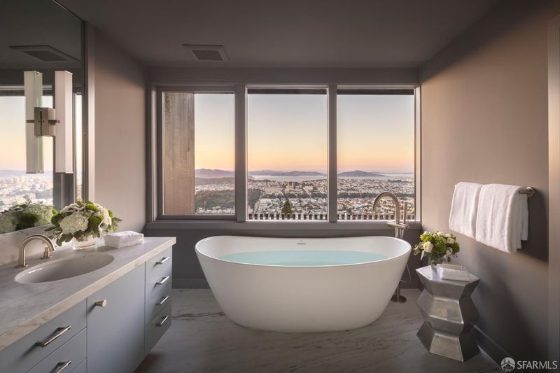 Extensively renovated in 2022, 180 Palo Alto is perched atop Twin Peaks and captures sweeping views of San Francisco's skyline, the Golden Gate Bridge, and the Bay. Designed in 1958 by Campbell & Wong Associates, 180 Palo Alto stands as an enduring example of Northern California mid-century modernism. The firm, celebrated for sculptural forms and an exceptional command of light, was integral to the Case Study House movement (CSH #27) that shaped American modern architecture from the 1940s to the 1960s. Their vision here is expressed in pure form: a striking glass facade, fluid interior spaces, and an effortless connection between home, garden, and view. A discreet entry gate leads to a terraced garden, where the house reveals its defining geometry. Inside, walls of glass flood the interiors with light, while four sets of French doors dissolve boundaries between indoors and out. The kitchen and family room are anchored by a marble-topped island and top-tier appliances, extending to dining and living areas with a balcony spanning the length of the home. The primary suite commands the panorama with private deck access, joined by two additional bedrooms and an office/bedroom. The lower level adds a family room, additional bedroom, office, and full bath. 2 car garage.