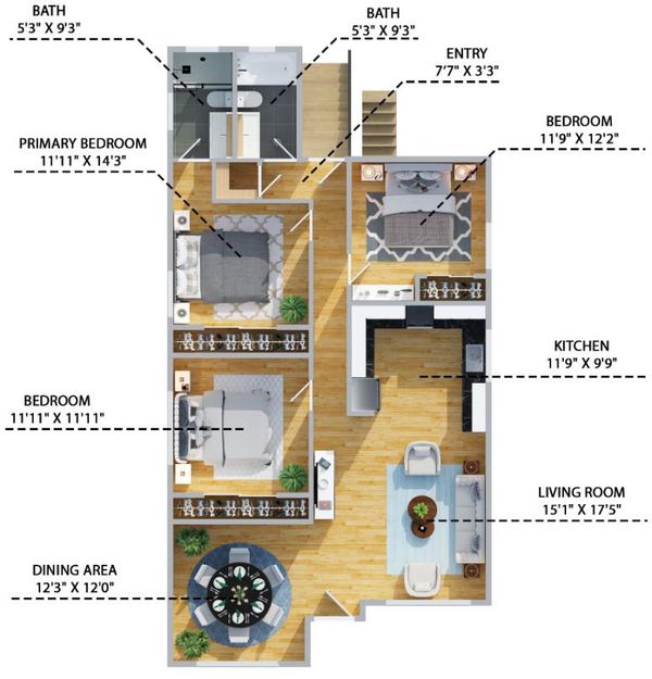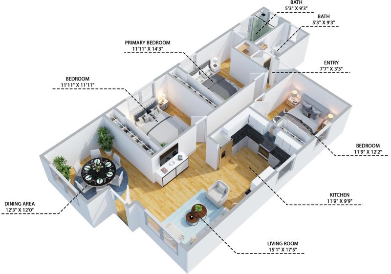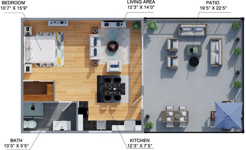 - Countertop - Quartz, Dishwasher, Oven Range - Gas, Refrigerator