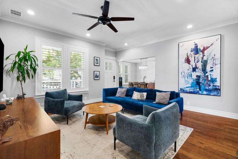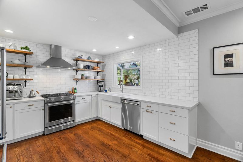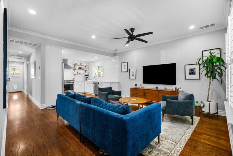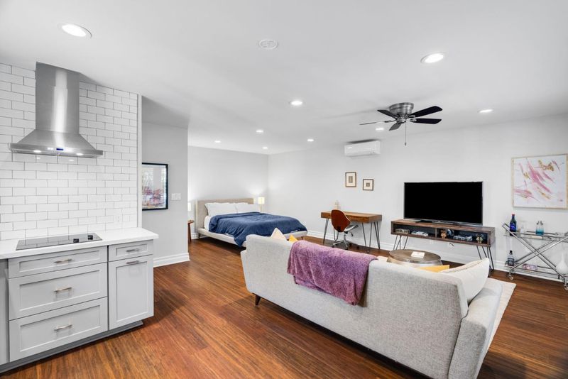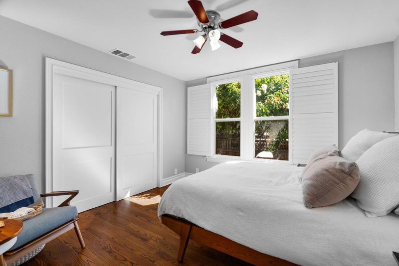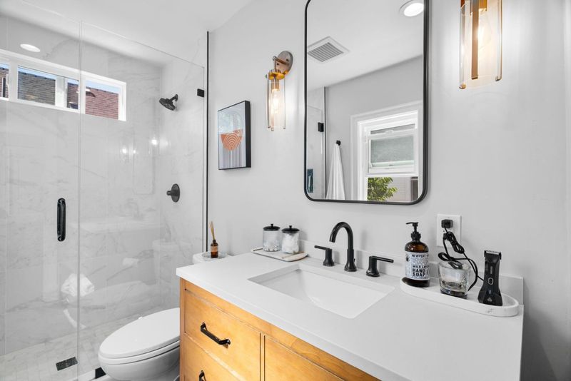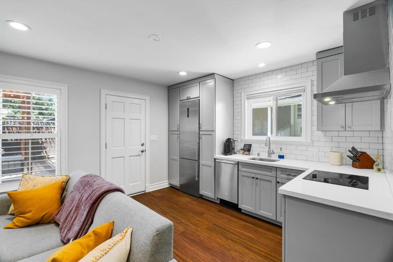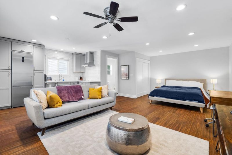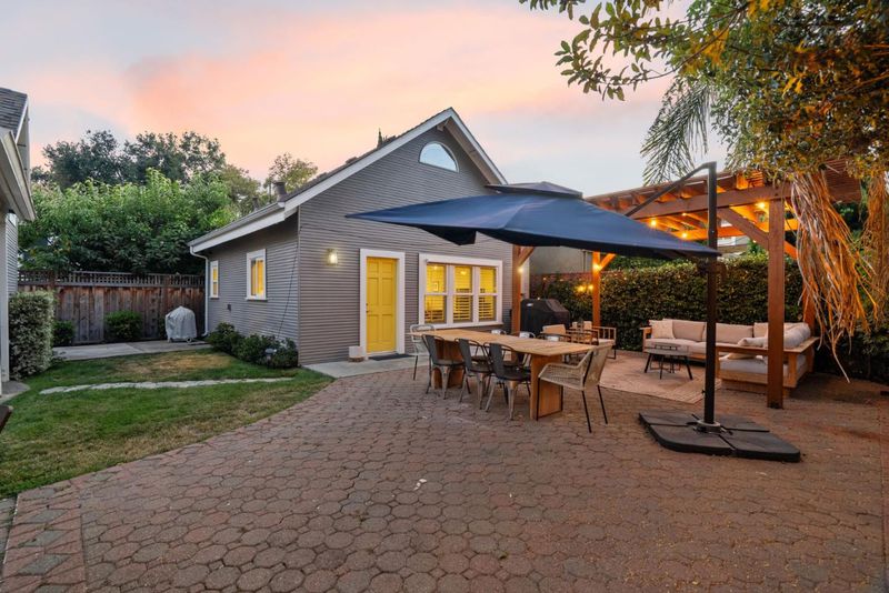 Pairing 21st century upgrades with classic Craftsman character, this remodeled and move-in ready single family home plus detached ADU (good for income generation or multi-generational living) offers almost 1,800 square feet of combined living space (1,267 sq ft 3 bed/2 bath main house and 517 sq ft detached designer ADU) in the vibrant heart of Shasta Hanchett Park, a short walk from CalTrain, Whole Foods, the Rose Garden, concerts and sporting events at the SAP Center, and endless local restaurants and coffee shops. Extensively fortified and upgraded both functionally and aesthetically, the laundry list of functional improvements include a sprawling, improved basement with a full vapor barrier, in-ceiling lighting, upgraded plumbing throughout, updated 200amp electric, updated central heat/air and ductwork, and professionally-installed hardscape with gated off-street parking. Solid oak hardwood floor, in-ceiling LED lighting, and dual pane windows; a fully-remodeled chefs kitchen with matching stainless appliances, farmhouse sink and garden window, a tasteful blend of solid wood cabinetry and floating shelving, quartz countertops, and Craftsman-appropriate subway tile from countertop-to-ceiling; solid wood doors; and two fully-remodeled spacious bathrooms.