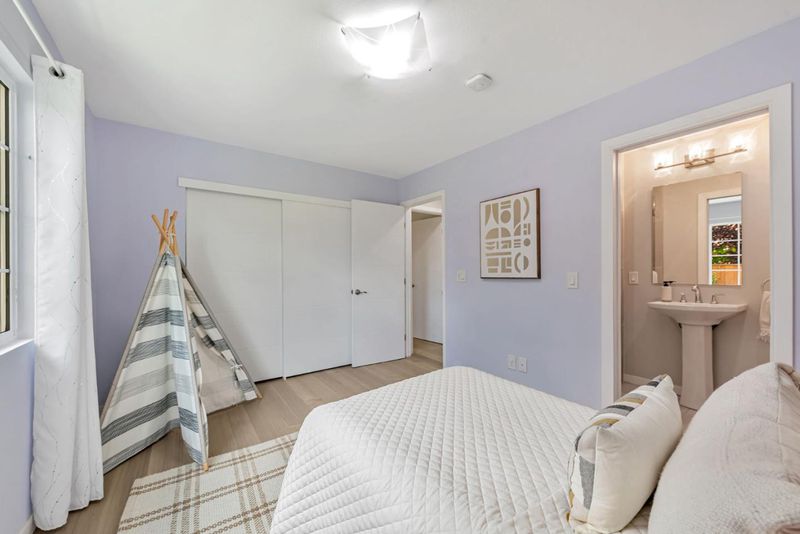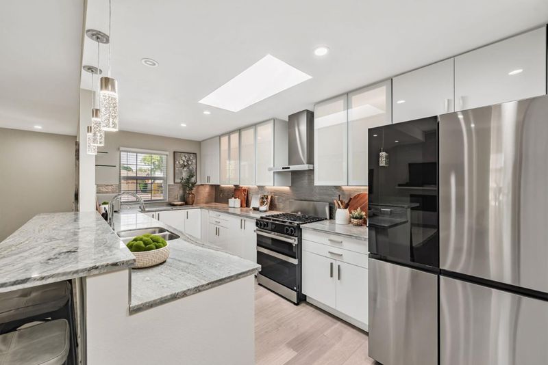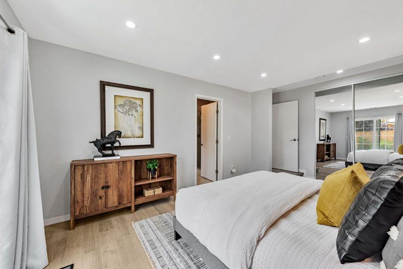This beautiful turnkey 4BR/3BA single level home spans approx. 1,923 sq ft and offers the perfect balance of style, comfort and convenience - giving you peace of mind with no major projects needed! High ceilings, abundant windows and skylights fill the open room layout with natural light creating a bright, welcoming space. The home was transpired, and additional living space was created in 2019. The complete renovation introduced new: flooring/windows throughout, a stylish kitchen with stainless mosaic tile and granite counters, spa-inspired bathrooms and HVAC system. Recently, the home has again been elevated with a Tesla Solar Roof (owned!), power wall and vehicle charging station, main panel upgrade, Samsung kitchen appliances, Indow window inserts, whole-house water softener, 3 phase water purifier, hardscaping creating usable/low maintenance space and a dry sauna to pamper yourself - making this home as luxurious as it is functional. Two ensuite bedrooms provide privacy for you and your guests. Nestled in one of the most central commute locations of Silicon Valley, you are a few-minute walk to Apple, minutes to Nvidia and access to Silicon Valley's tech corridor. Located near highly rated schools, restaurants and shopping, you are going to love calling this home!