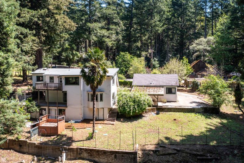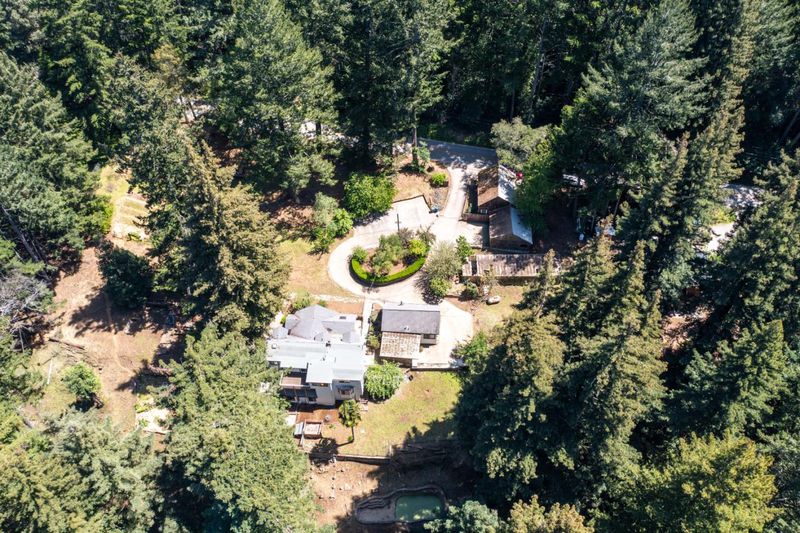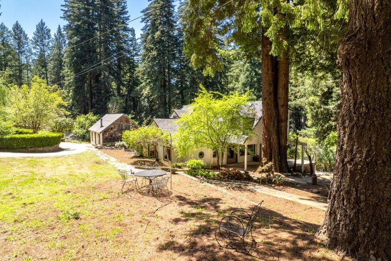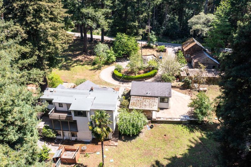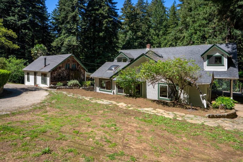 Discover your own private 3.6 acre retreat in the serene hills where comfortability meets creativity and natural beauty, minutes from world-class surf, scenic hiking trails, and vibrant Santa Cruz. The main home offers an inviting kitchen designed for everyday living and entertaining, flowing into a spacious living room anchored by a stunning fireplace. The flexible floor plan includes multiple ensuite bedrooms, including a private primary suite on the lower level, plus an additional bedroom. Upstairs, a second primary suite is complemented by a bonus space \ideal for an office, nursery. An oversized basement studio with a full bath, perfect for guests or a private living space. Beyond the main residence, the property features three charming cabins, two one bedroom units, and a third that serves as a versatile studio ideal for art, fitness, or hobbies. Outdoor highlights are equally compelling. An unfinished pool awaits your vision. Imagine it a centerpiece for summer gatherings. The land stretches across your private access to Mill Creek and up the hillside. All surrounded by iconic redwoods. With privacy, space to roam, and endless potential. This exceptional property is ideal as a compound, retreat, or artistic sanctuary. Dont miss out on this truly special offering!