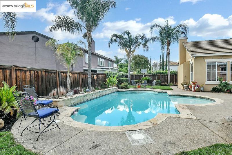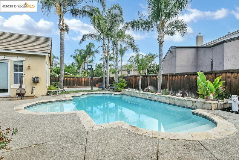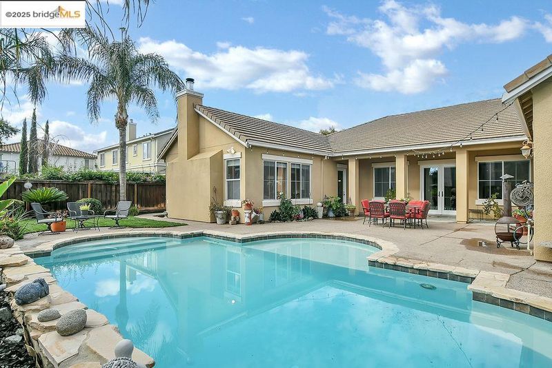 Discover 3785SF of luxury in this impeccably maintained one story home, nestled in Brentwood's prestigious Montelena neighborhood. Custom touches meet functionality in a sophisticated and spacious residence. High ceilings and beautiful tile floors welcome you into formal living and dining areas, perfect for entertaining. The casual yet expansive family room with a cozy fireplace connects seamlessly to a chef's dream kitchen featuring ample storage, pantry, island seating, gas range, wet bar and wine fridge. Step outside to an entertainer's paradise with expansive patio, a "party pool" with waterfalls a Baja shelf and athletic court. Work from home? The office/den room offers a quiet and productive environment, or could serve as an ideal media room, kids' hangout, workout room, or 5th bedroom. Additional features include shutters, a three-car garage. Located near parks, trails, dining, shopping, access to Hwy4 and Bart. OPEN HOUSE 10/4 & 10/5, 12 to 4pm.