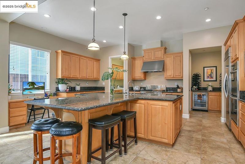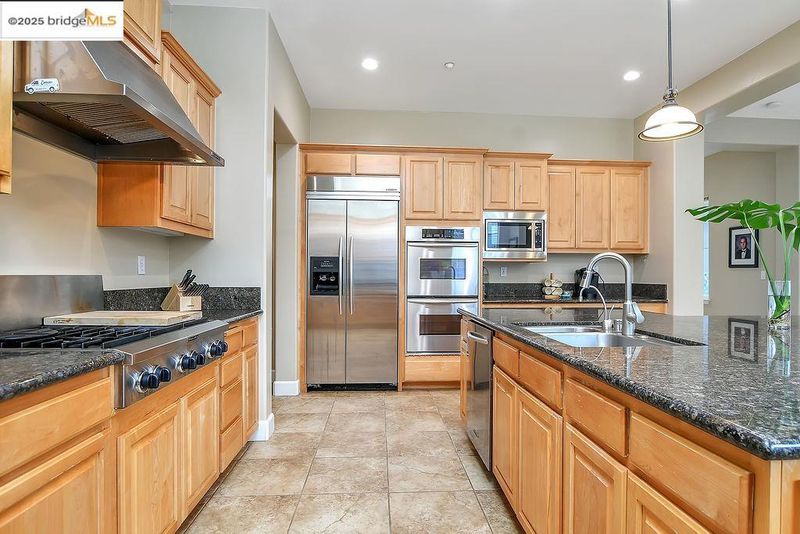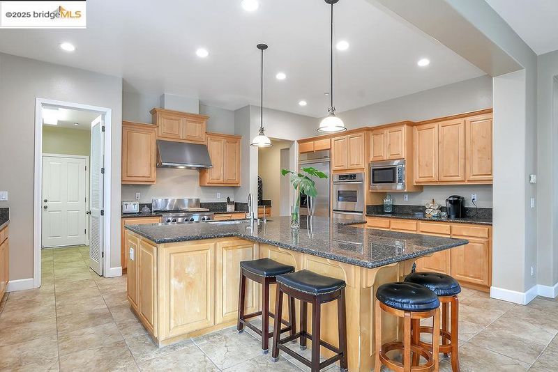 - Microwave, Oven, Range, Refrigerator, Counter - Solid Surface, Eat-in Kitchen, Kitchen Island, Oven Built-in, Pantry, Range/Oven Built-in, Wet Bar