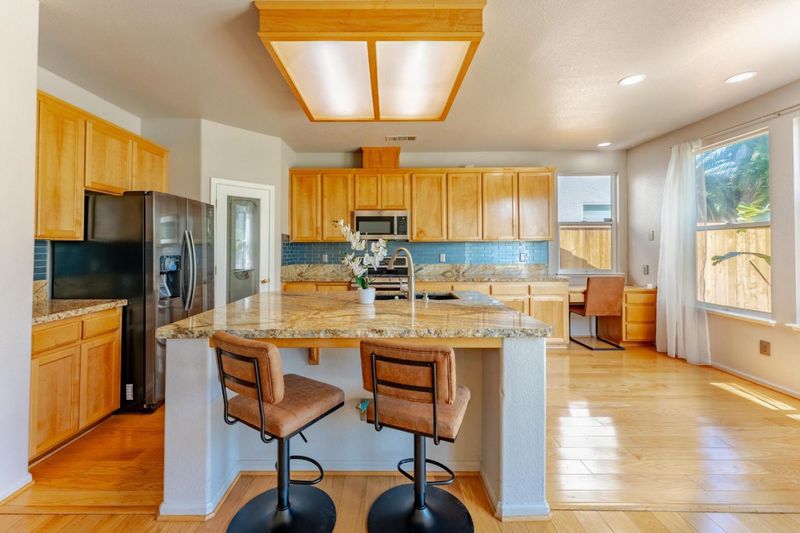 Experience resort-style living in this move-in-ready home, featuring a sparkling gunite pool and a beautifully designed backyard, perfect for entertaining or unwinding. The chef's kitchen features granite countertops and stainless steel appliances, and opens to the breakfast nook and family room, both of which have hardwood floors. The elegant primary suite offers a private retreat with a fireplace. Additional highlights include a downstairs guest room and backyard storage, blending comfort, style, and sophistication.