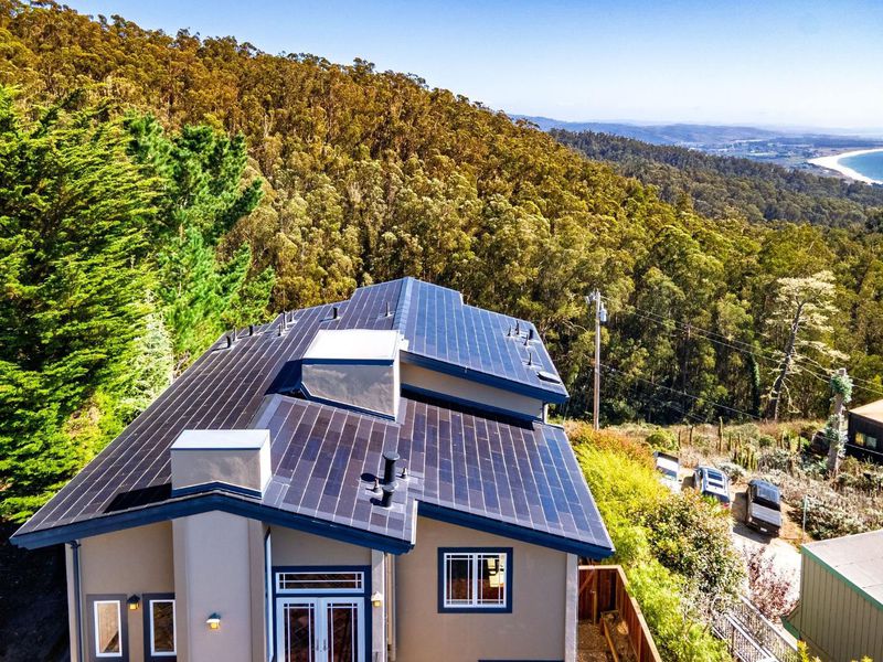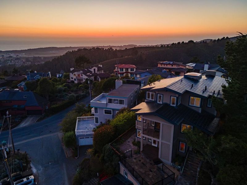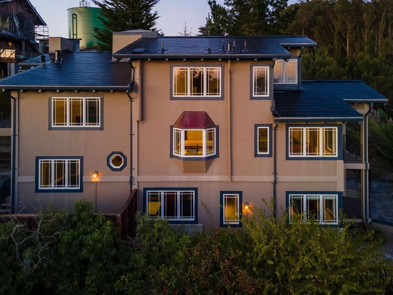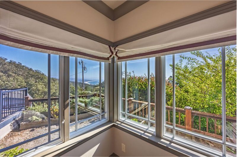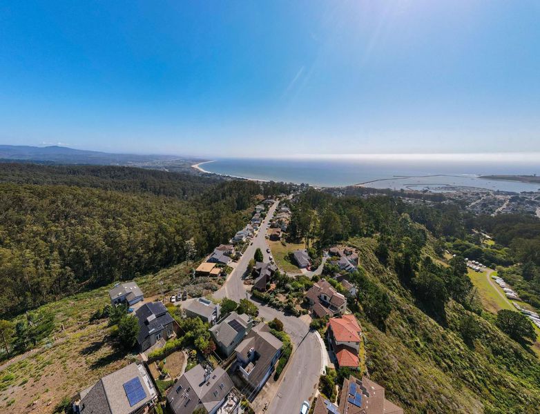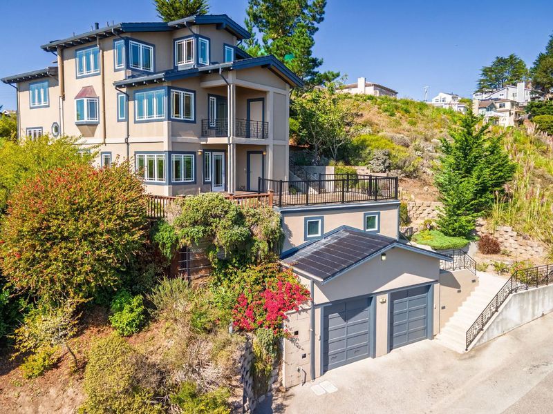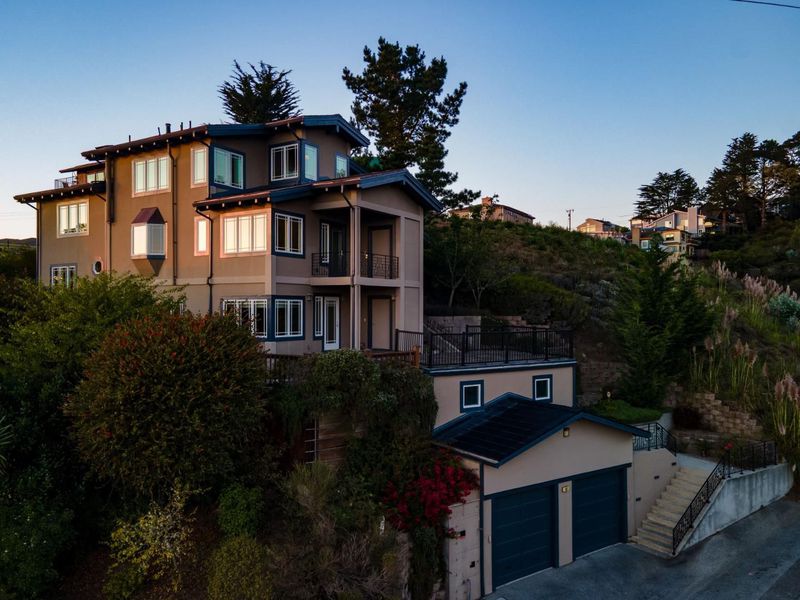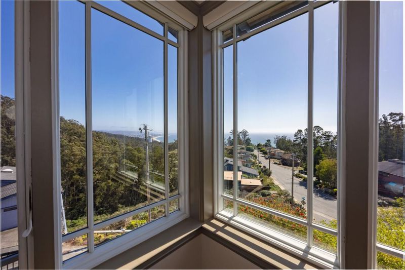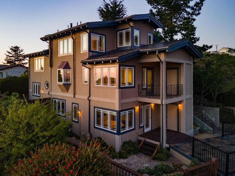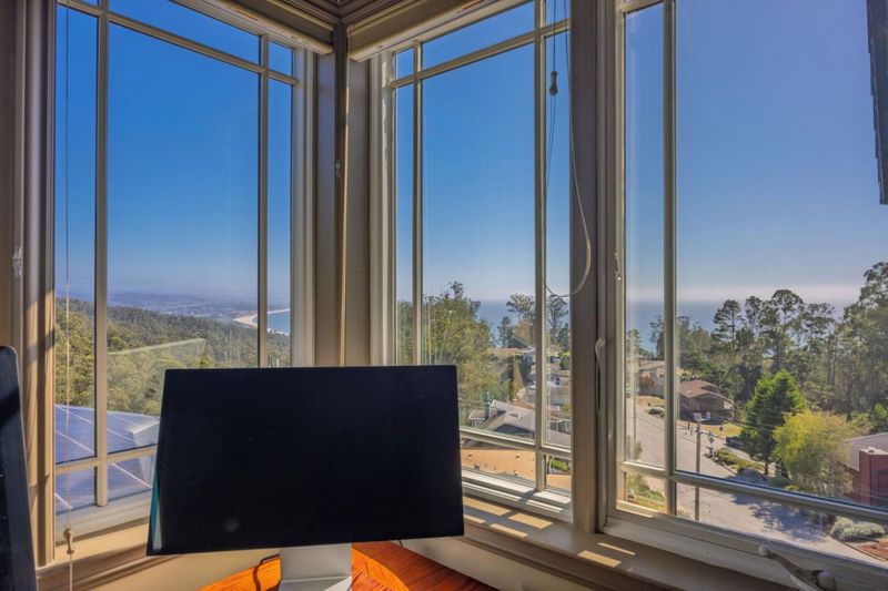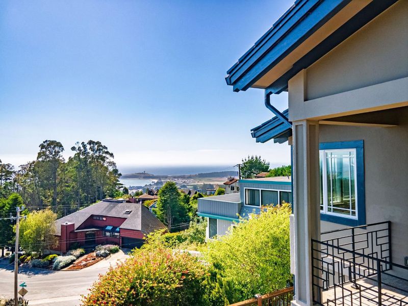 Panoramic coastal views from the Ritz Carlton to Mavericks, and easy access to Quarry Park's many trails. Solar roof, elevator, plus versatile floor plan for au pair or extended-stay guests. Come for an Open House or tour by appointment.