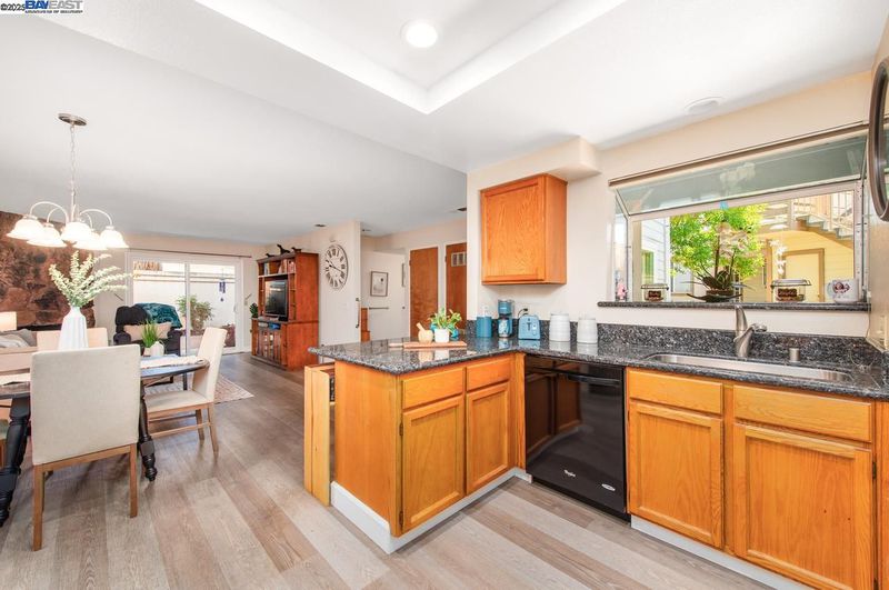 Single Level and affordable with large yard!! Sharp and ideally located near DOWNTOWN Pleasanton!! Easy to access home situated as end unit townhome with the perfect yard space. This combination is hard to find!! West facing front door opens to an inviting living area with cozy fireplace open to the gourmet kitchen with granite, stainless appliances, Luxury vinyl flooring throughout and newer bath updates, fresh paint. This corner unit has a darling patio with a big yard perfect for dining, BBQs and a dog!! Walk to Historic Downtown, Close to shopping, Schools, Farmer's market, BART, Train, The HOA covers trash and water. 1 car attached garage and plenty of storage space!!