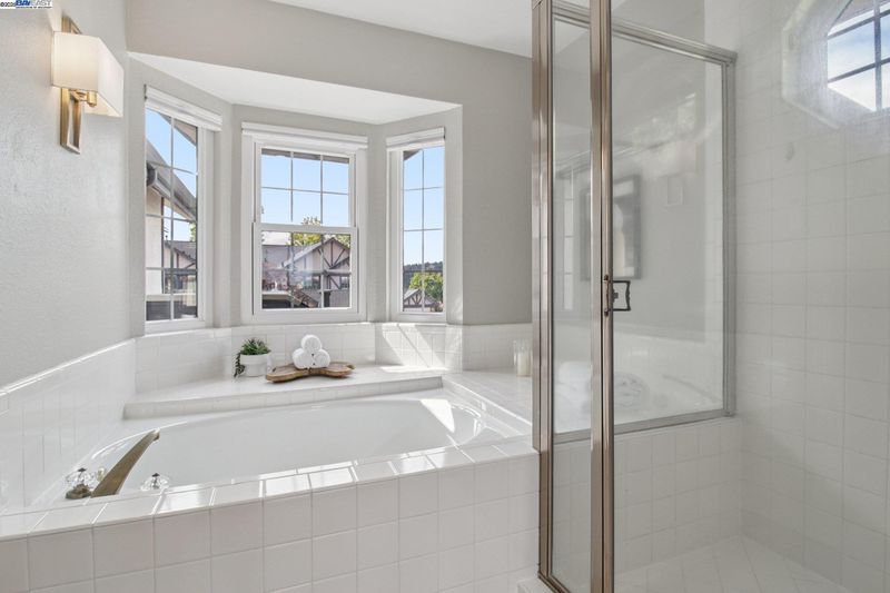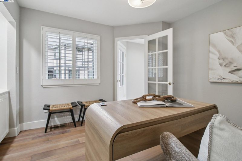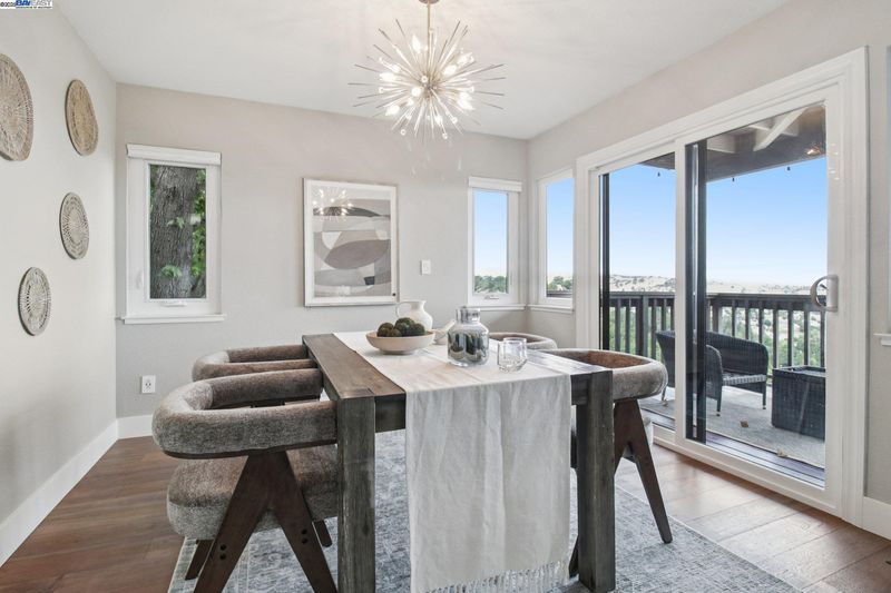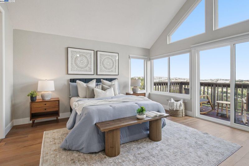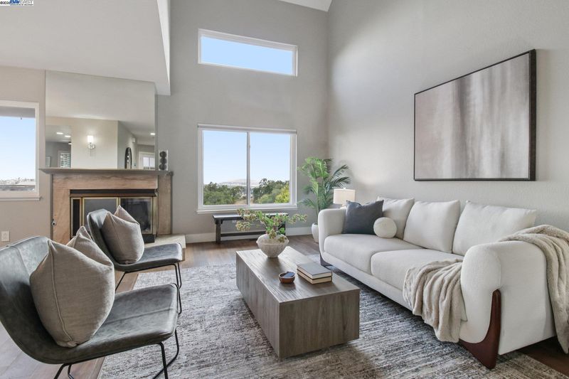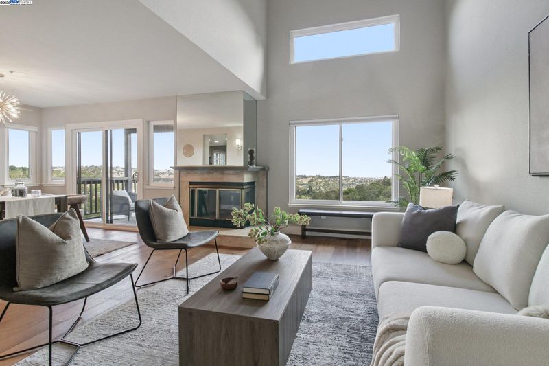 Stunning, move-in ready end-unit in Lafayette’s desirable Haslemere community with breathtaking views of the Carquinez Strait, hillsides, and valley from both decks. This extensively updated 3BD/3BA unit lives like a single-family home with only one shared wall and an attached 2-car garage. The dramatic main level features soaring ceilings, engineered hardwood floors (Heirloom Collection by Provenza), updated windows, and fresh interior paint. It includes a spacious living room with fireplace, dining area, full bath, and a versatile bedroom or home office with custom French doors. The eat-in kitchen boasts a Samsung convection double oven and designer touches throughout. Upstairs, the serene primary suite offers vaulted ceilings, a private deck with views, spa-like bath, and blackout window treatments. A second spacious ensuite bedroom and laundry area complete the upper level. Additional highlights include USB outlets, plantation shutters, new garage doors, turf lawn, bonus storage, and updated HVAC. Both newly refinished decks provide the perfect setting to unwind while enjoying panoramic views. Community pool, spa, and BBQ area. Minutes to BART, freeways, top-rated Lafayette schools, and shopping.