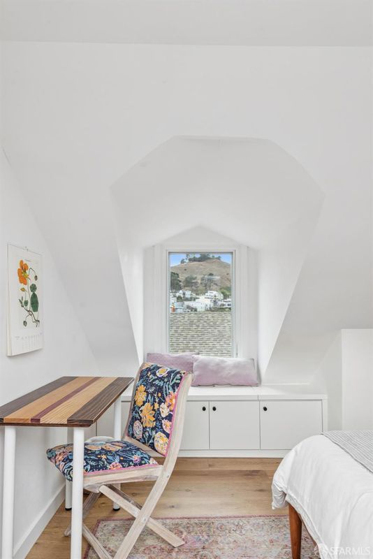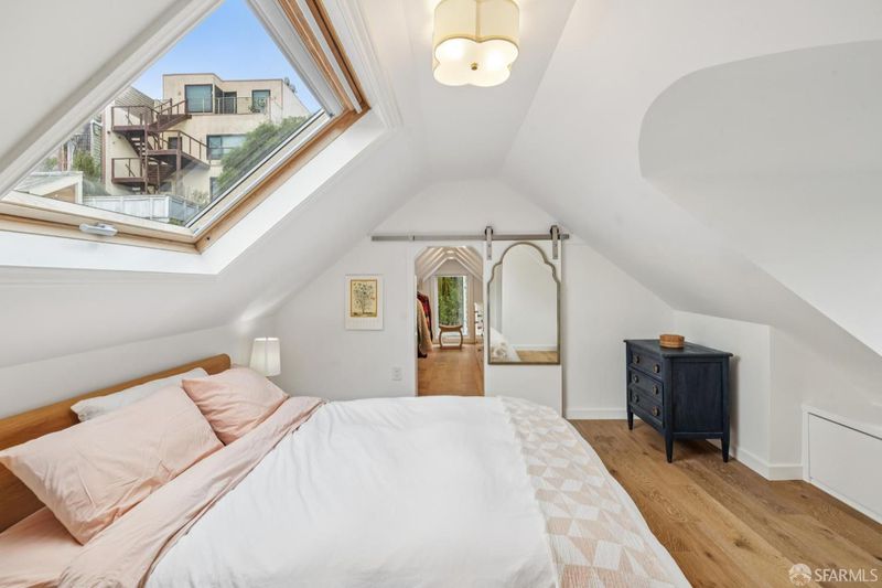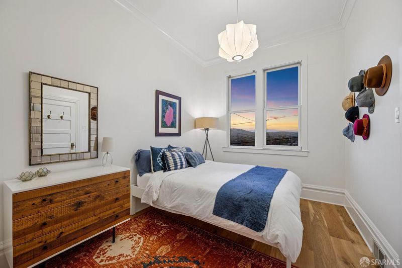 Once in a while one of those special houses comes along that pulls on your heartstrings, 225 Montcalm is that house. The perfect blend of Victorian charm & modern living. Quintessential indoor outdoor living that characterizes California style living, & perched on the coveted northern slope of Bernal Heights, the sweeping views set the tone for this truly unforgettable home. Step inside the custom entry door to find beautifully preserved period details-tall baseboards and a rosette in the entryway. The kitchen is a true centerpiece, w/custom cabinetry, high-end finishes, & stunning Fireclay tile that feels both modern & timeless. Just beyond, the coziest seating area invites you to linger, flowing seamlessly to back deck w/an ambiance unlike anything else, perfect for quiet mornings or lively evenings. The bathroom continues the attn to detail w/Fireclay tile & finishes chosen with a designer's eye. Upstairs, the primary suite is a retreat of its own, featuring a special walk-in closet ordained with unique Indian knobs. Beautiful oak hardwood runs throughout, grounding the home with warmth. Downstairs, you'll find a spacious garage, dedicated wine storage, & adtl storage that makes city living effortless. Every inch of this home has been considered, from the flow to the finishes