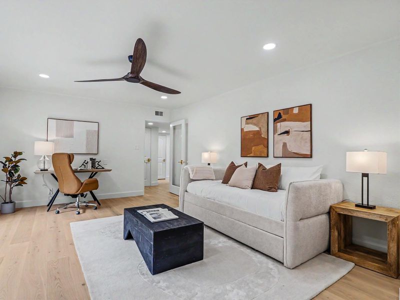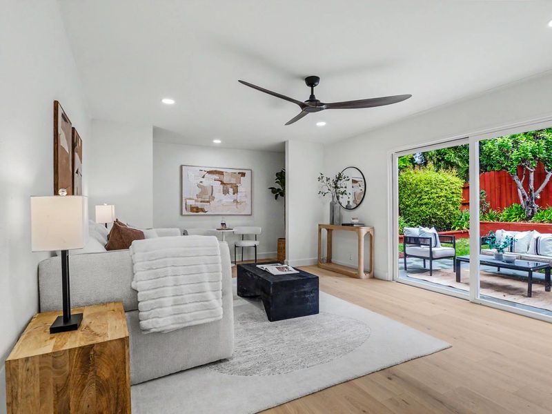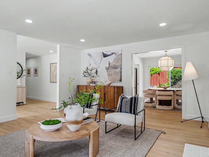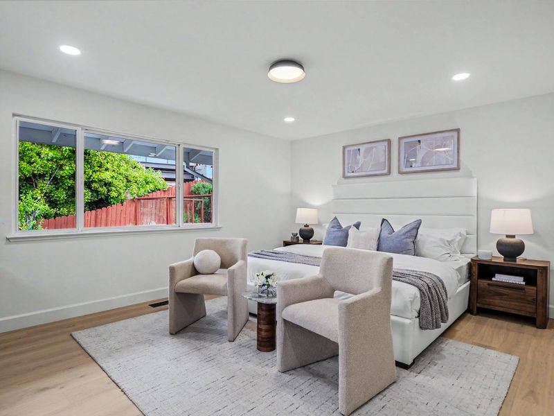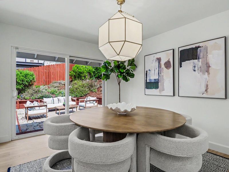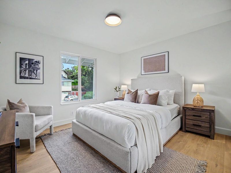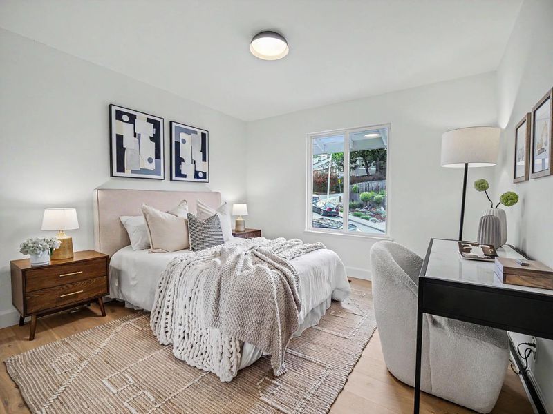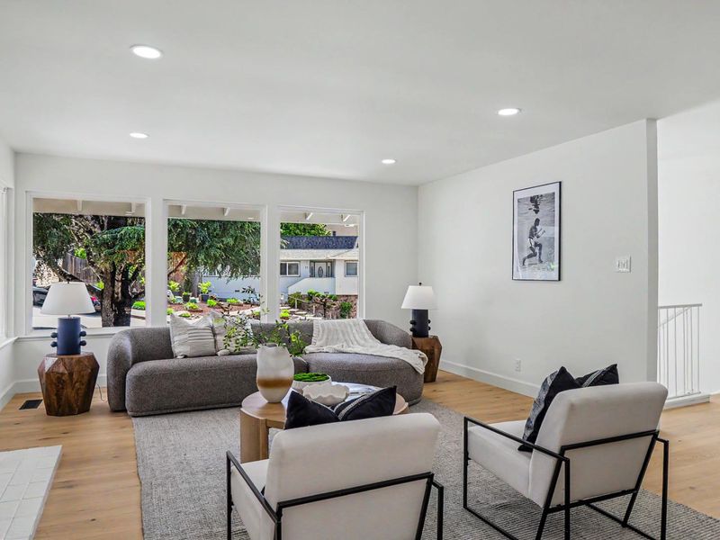 Discover California casual elegance in this updated, move-in-ready residence in the sought-after Devonshire neighborhood of San Carlos. The thoughtful split-level design provides versatility: 4 bedrooms and 3 full bathrooms. 3 bedrooms and 2 baths upstairs, plus a private downstairs bedroom and full bath with garden entrance ideal for guests, home office, or multigenerational living. This rare corner lot offers dual driveways: upper, with ample space for RV, boat, or toys; lower, leading to the attached garage. Light-filled, airy interiors feature new French oak hardwood flooring, fresh paint, and a chefs kitchen with quartz countertops, spacious cabinetry, new stainless steel appliances, and a skylight flooding the open dining and living areas with natural light. The cozy living room boasts a wood-burning fireplace; dining opens to an enclosed upper patio for seamless indoor-outdoor entertaining. Outdoor stairs lead to a lush, fully fenced grass and garden yard below. On (wide) Bay View Drive in the hills, enjoy easy access to Club Drive, vibrant downtown San Carlos dining, boutiques, amenities and quick access to Highways 280/101, nearby parks, trails, and hill views. A true family treasure with outstanding value in a central, desirable location. Buyer to verify square footage.