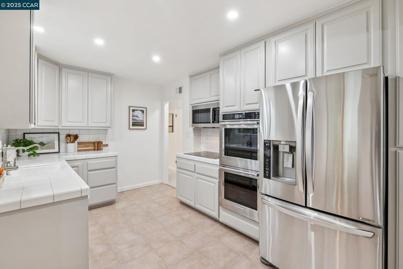 - Dishwasher, Double Oven, Electric Range, Microwave, Refrigerator, Gas Water Heater, Tile Counters, Eat-in Kitchen, Electric Range/Cooktop