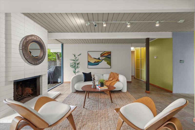 Remodeled Iconic Eichler on a rare 12,000 sf lot w/a separate ADU featuring high ceilings, kitchen, living room, bedroom & full bath. Authentic characteristics treasured to this day: Open concept living, stylish beams, soaring w/natural light through floor-to-ceiling windows framing the gorgeous outdoors, original Eichler ceiling stain, globe lighting, Italian tile flooring, & much more. Serenely situated w/a private front courtyard w/a welcoming expansive deck w/a soothing fountain. The Chef's Remodeled kitchen features a Thermador 5 burner gas range, Thermador oven, Bosch dishwasher & KitchenAid refrigerator. Plenty of prep space on granite slab counters w/abundant cabinets, island seating & a breakfast nook. The living room features a cozy fireplace & separate dining area. The spacious family room is a huge bonus w/new carpeting. The primary features a walk-in closet & remodeled bath. The hall bath has been updated w/designer tile & edgeless glass. The park-like backyard enjoys a large grassy area for play surrounded by mature plants. Located in a fabulous neighborhood w/2 parks & close to shopping, Apple, Nvidia, Google & other Major Silicon Valley Employers. Excellent Schools: Stocklmeir Elementary, Cupertino Middle, & Fremont High.