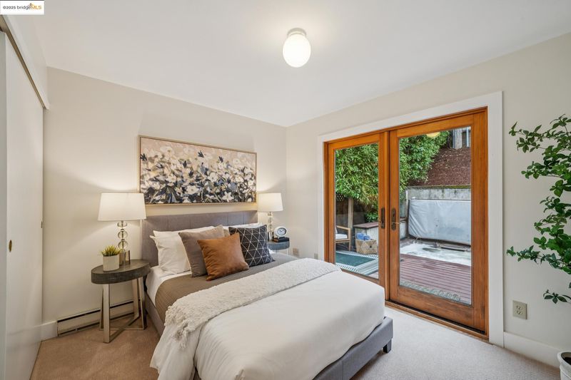 This peaceful North Berkeley Hills retreat offers light-filled living with freshly refinished hardwood floors, tall ceilings, and green views from almost every window. Step inside to find a welcoming living room, a bright dining area, a kitchen complete with pantry, and a handy half bath. Sip your morning coffee on the deck accessed through French doors. Down one level, all three bedrooms, including a primary suite with en-suite bath are thoughtfully located with laundry nearby. A dedicated office with both interior access and a separate entrance is on the third level providing privacy and flexibility for work or guests. Built in 1979 with modern systems and copper plumbing, the home combines reliability with comfort. Multiple decks, a sunny patio, and a secluded hot tub invite you to relax and enjoy the surrounding natural beauty. Just minutes from UC Berkeley, the Rose Garden, and neighborhood parks, as well as Berkeley’s shops and restaurants, this home offers the perfect balance of convenience and tranquil hillside living.
