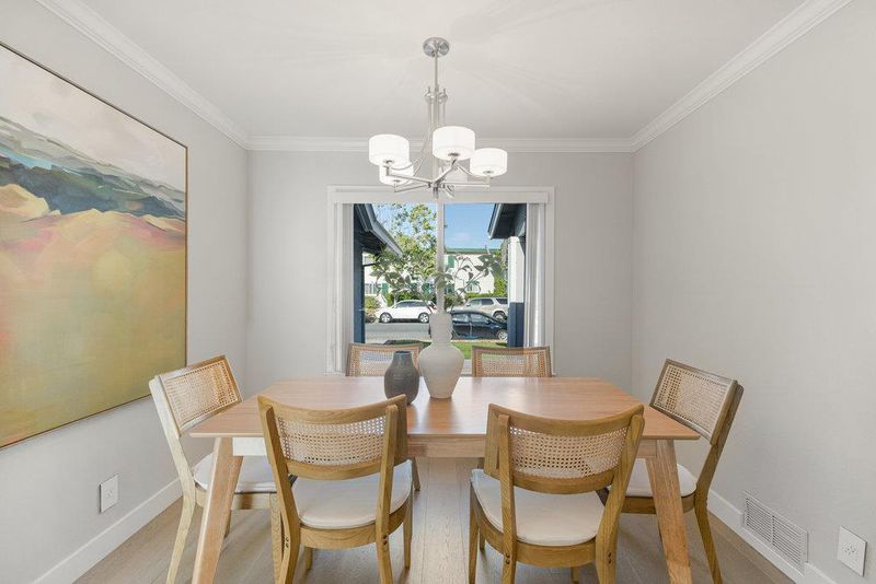 Nestled in the highly desirable Starbird Neighborhood of West San Jose, this beautifully reimagined 4-bedroom, 2-bathroom single-story home offers a harmonious blend of refined design and modern comfort. Located on a quiet, tree-lined street, the home welcomes you with abundant natural light streaming through expansive dual-pane windows, highlighting the open-concept floor plan and creating an airy ambiance. Mindfully designed with Feng Shui principles, the layout promotes clarity, and a graceful flow of energy. A major renovation transformed the heart of the home into a chefs kitchen with custom cabinetry, quartz countertops, designer tile-work, and recessed lighting. Elegant finishes include engineered oak hardwood floors, two stylish bathrooms, crown molding, custom millwork, and curated fixtures. The spacious living and dining areas open effortlessly to the landscaped backyard, creating a natural extension of the homes living space, a tranquil retreat from the bustle of Silicon Valley. This residence is ideally located near the best of the region- Mitsuwa Marketplace, Santana Row, Westfield Valley Fair, Downtown Campbell, and major commute corridors. It is also minutes from renowned private schools such as Harker, Challenger, and Archbishop Mitty, and major tech campuses.