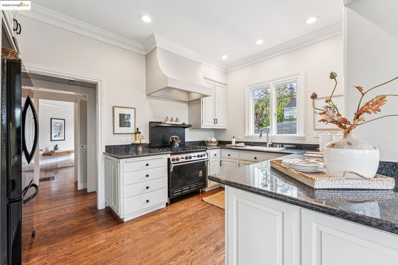 - Dishwasher, Gas Range, Free-Standing Range, Refrigerator, Gas Water Heater, Breakfast Nook, Stone Counters, Eat-in Kitchen, Disposal, Gas Range/Cooktop, Range/Oven Free Standing
