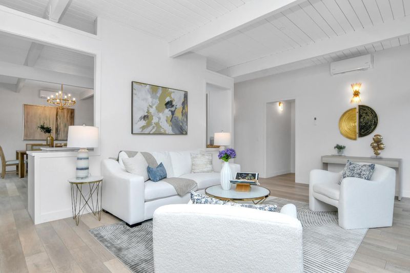 Tucked into the quiet curves of San Rafaels Lucas Valley, this reimagined Eichler invites you to live differently. Taken down to the studs in 2025 and rebuilt by licensed contractors, the home blends calm mid-century lines with modern performance. Light moves across wide-plank LVL flooring and open living/dining spaces anchored by a modern kitchen with THOR appliances, custom cabinetry, and quartz counters. Two new bathrooms feature contemporary tile and fixtures. Behind the design is true peace of mind: all-new electrical and plumbing, a new roof, efficient ductless mini-splits for heating and A/C, and a new fire-sprinkler system - all work to code and fully permitted. Floor-to-ceiling glass connects to a level yard with fresh landscaping and automatic irrigation, plus new concrete patio and driveway for easy indoor/outdoor living. Close to trails, parks, and neighborhood favorites, this turnkey residence delivers the architecture you love with the reliability you want - move in and exhale.