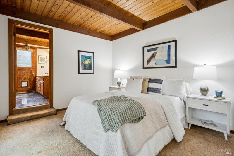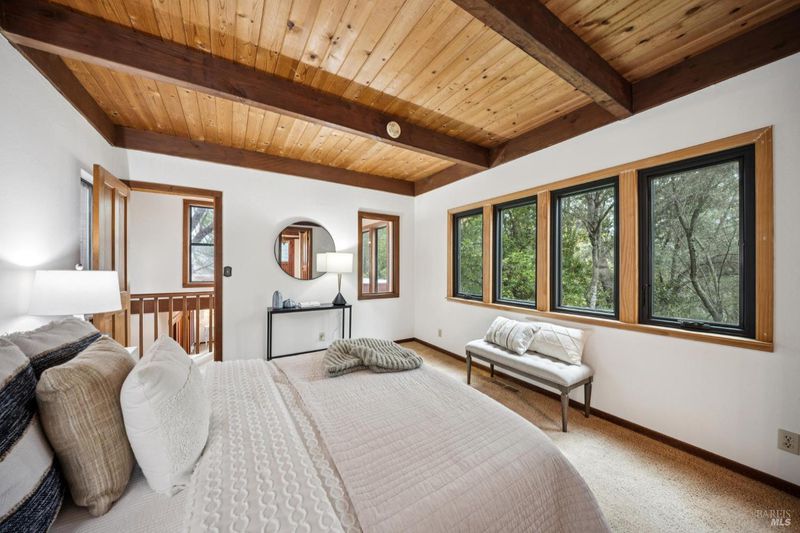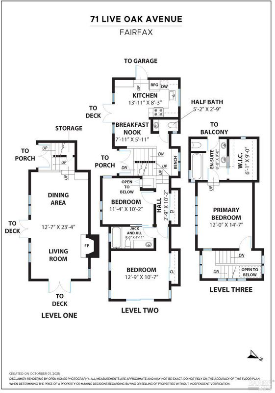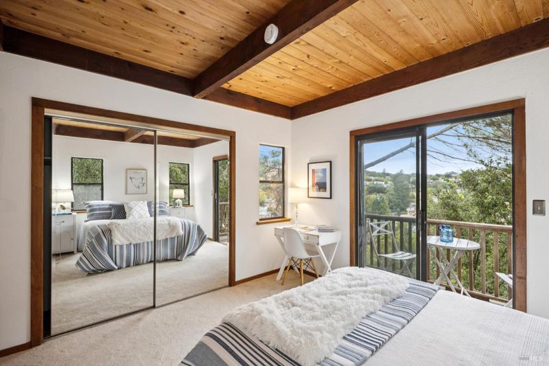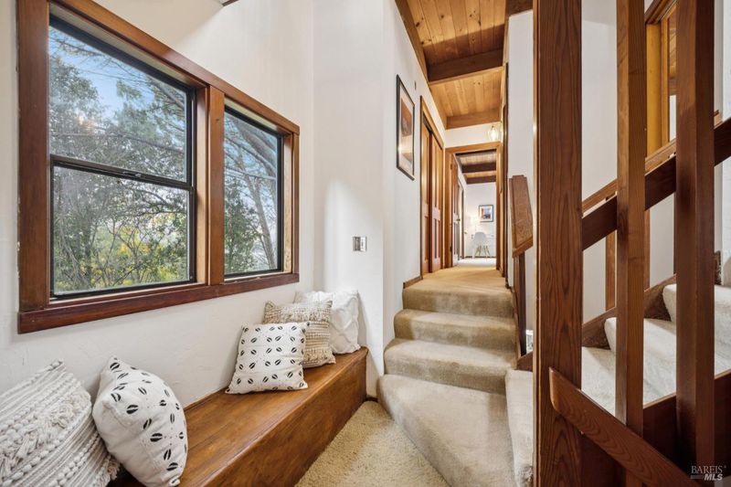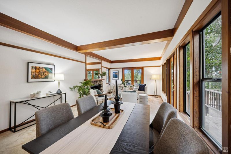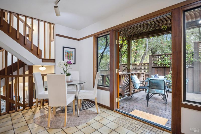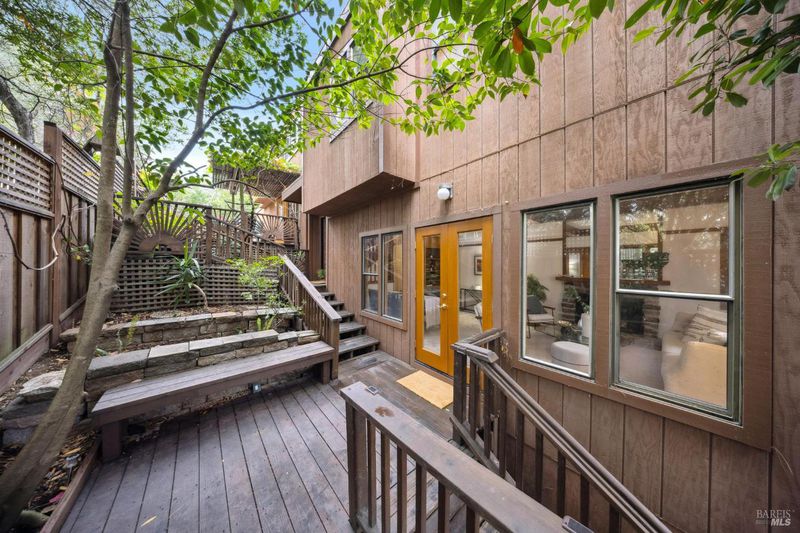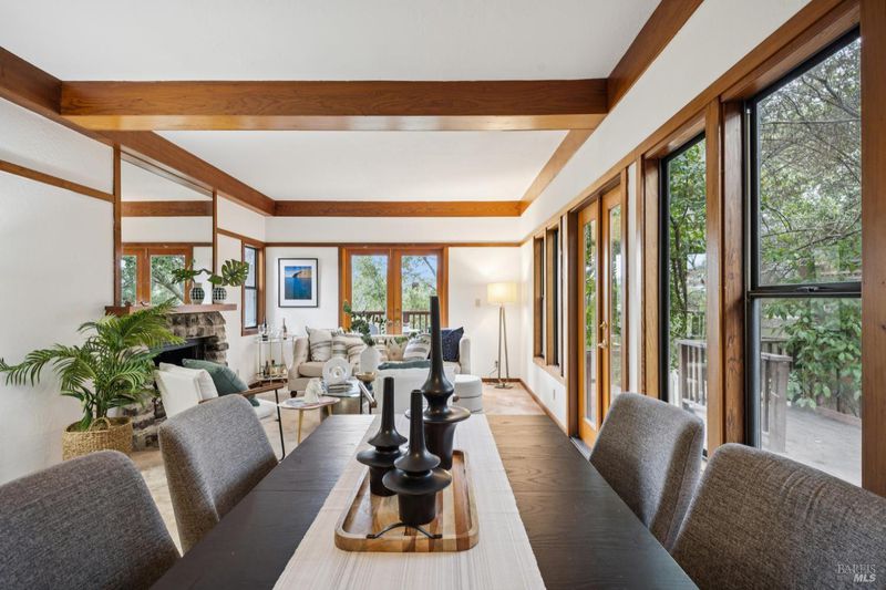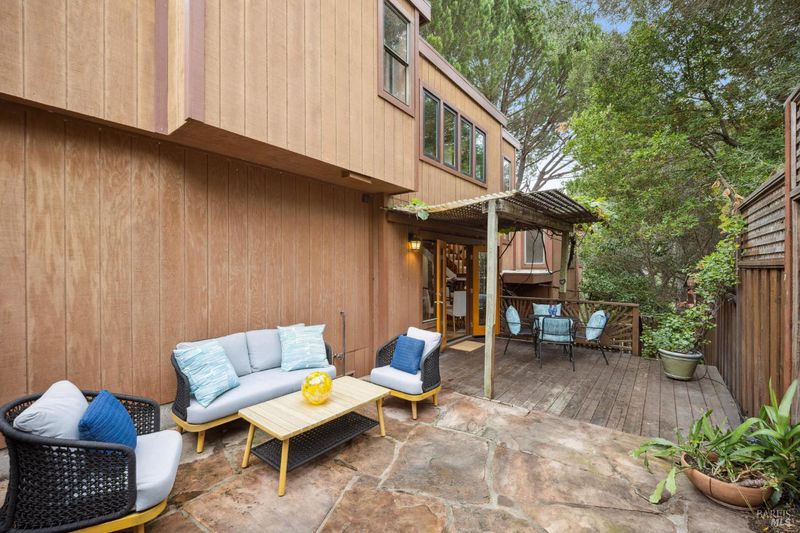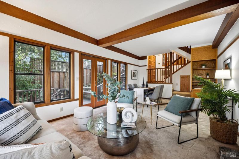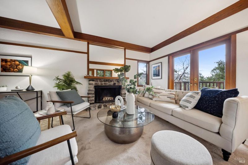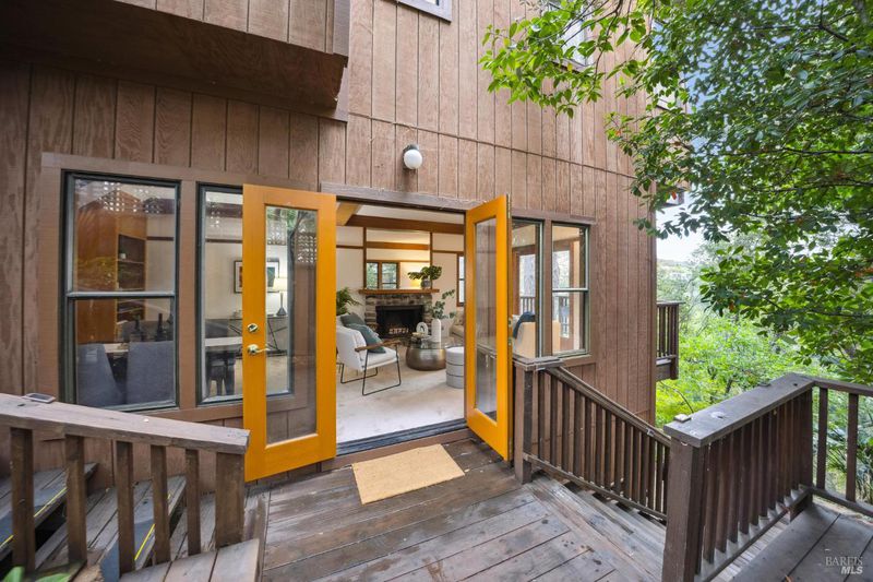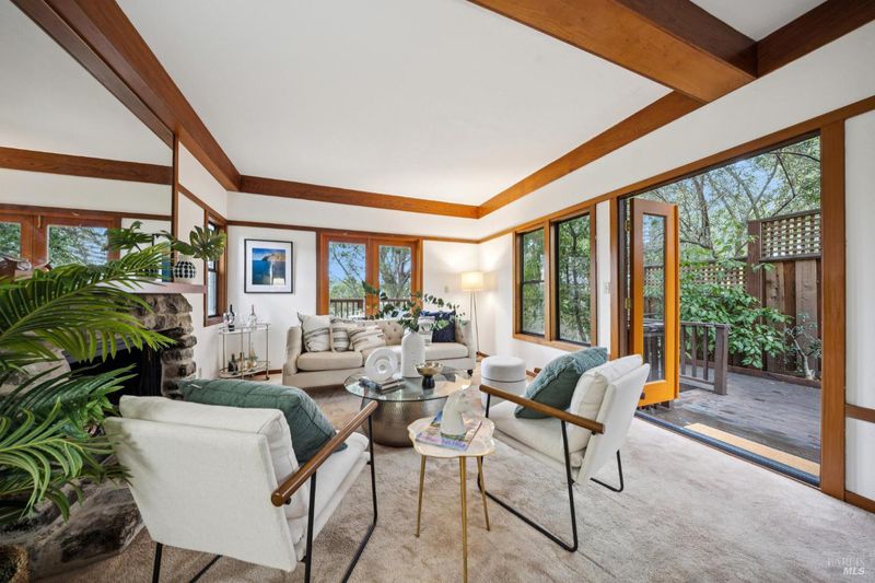 Welcome to 71 Live Oak Ave. Tucked away in the hillside yet minutes from downtown Fairfax, this 3-bedroom, 2.5-bathroom home is full of character and ready for its next chapter. The lower level features a cozy dining and living room with wood-burning fireplace, perfect for relaxed evenings. The kitchen and breakfast nook on the main floor open to a patio, offering an indoor-outdoor flow that is perfect for gathering and al fresco dining. A convenient half bath sits just off the stair landing, while two bedrooms and a shared bath are down the hall. The top floor is dedicated to the primary suite, complete with a walk-in closet. Wood beam ceilings add warmth throughout, and access to decks on every level brings the outdoors in. The attached garage adds everyday convenience and the deep, private lot offers plenty of possibilities. In the award-winning Ross Valley School District, a 10 minute walk to Good Earth and conveniently close to Fairfax's great restaurants, live music and endless hiking trails, this home offers both privacy and proximity in one of Marin's beloved communities. Bring your vision and make it your own!
