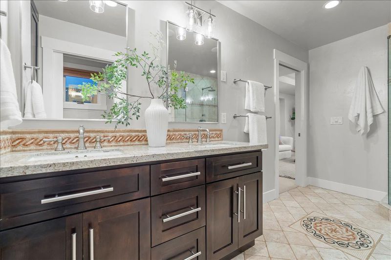 - Double Sinks, Full on Ground Floor, Half on Ground Floor, Primary - Stall Shower(s), Shower over Tub - 1, Tile, Updated Bath