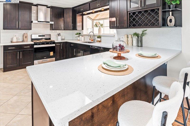 - Dishwasher, Gas Range, Free-Standing Range, Refrigerator, Washer, Gas Water Heater, 220 Volt Outlet, Breakfast Bar, Stone Counters, Eat-in Kitchen, Disposal, Gas Range/Cooktop, Range/Oven Free Standing, Skylight(s)