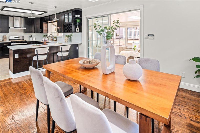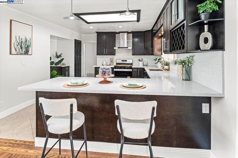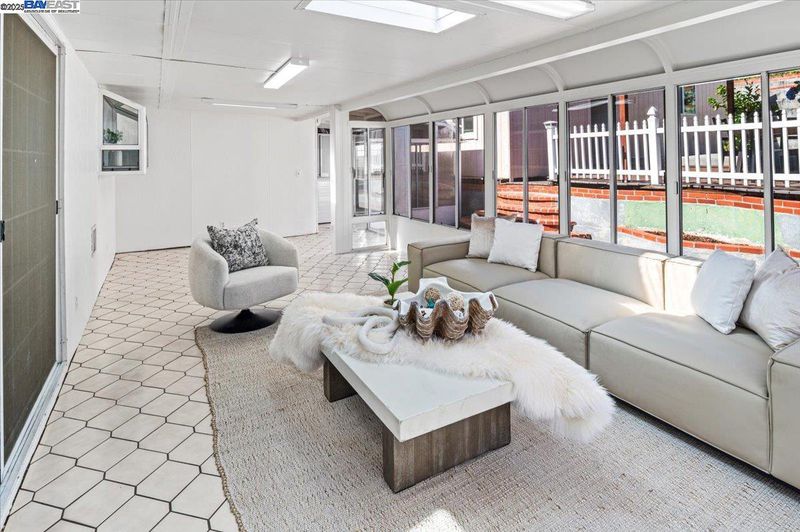 Welcome to this inviting 3-bedroom, 3-bath residence offering 1,731 sq. ft. of living space plus a sunroom and additional bath (not included in square footage) — an ideal retreat for guests or a versatile bonus area. The heart of the home is the open kitchen–family room, where an eat-in dining space, breakfast bar, and skylights create a bright and welcoming setting. The remodeled kitchen showcases rich wood cabinetry, solid countertops, and a gas range, while the updated bathrooms add a fresh, contemporary style. All main living areas are located on one convenient level, with the garage tucked just below. Step outside to a covered deck and patio perfect for outdoor dining and entertaining, complemented by a spacious backyard with room for gardening and play. A detached multi-purpose room in the rear yard and two storage rooms off the garage provide abundant flexibility. Additional features include hardwood floors throughout, central air conditioning for year-round comfort, and thoughtful updates that make