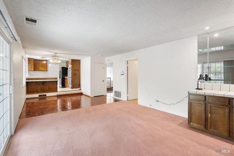 This spacious 4/bedroom, 3/bathroom home is tucked away in the highly sought-after Somerset Highlands neighborhood of East Vallejo. Located on a quiet street it offers the perfect balance of tranquility and convenience. The flexible floor plan features one bedroom and a full bath on the main level ideal for multigenerational living or guest accommodations plus three additional bedrooms and two updated bathrooms, one upstairs and one down. As you enter, you're welcomed by vaulted ceilings and an abundance of natural light. The kitchen, while mostly original, includes updated appliances and offers a blank canvas for the new owner's modern touches. Just off the kitchen, the family room features a cozy buck stove insert and a built-in bar, creating a warm space to relax or entertain. Recent improvements include an updated HVAC system and water heater, along with two renovated bathrooms. Exterior upgrades abound with fresh paint, low-maintenance landscaping in front and back, newer fencing, concrete walkways in select areas, spacious covered patios, and an uncovered paver patio with a raised planter bed and seating wall. There's also potential RV/boat parking. Conveniently located near parks, shopping, and commuter routes, this home is an excellent opportunity to make your own.