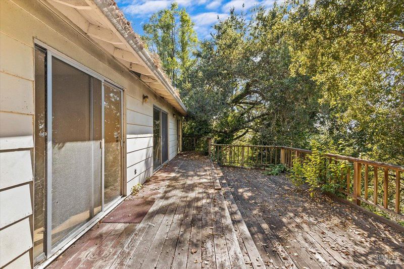 Tucked into the trees of Santa Rosa's sought-after Montecito Heights / Alta Vista neighborhood, this mid-century home offers tremendous potential for those ready to roll up their sleeves. Situated on a private, wooded parcel of approximately one-third acre, the setting feels miles away yet remains just minutes from shopping, parks, and local conveniences. The single-level layout spans over 2,100 sq ft and features three bedrooms, three bathrooms, and multiple living areas, including both a family room and living roomeach offering access to the expansive deck surrounded by mature oaks. The large kitchen and adjoining dining area open toward tree-filtered views, creating an inviting footprint for a modern re-imagining. Original hardwood floors, a classic brick fireplace, and vintage tile details nod to the home's 1960s character. Bring your contractor, creativity, and visionthis is a rare opportunity to revive a home in one of Santa Rosa's most established hillside neighborhoods.