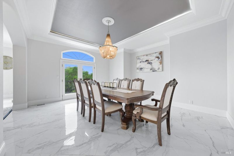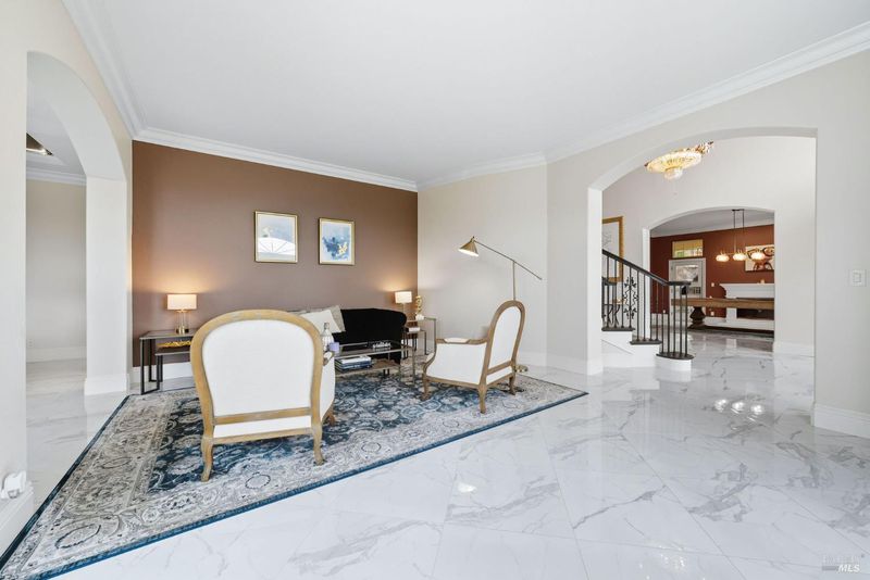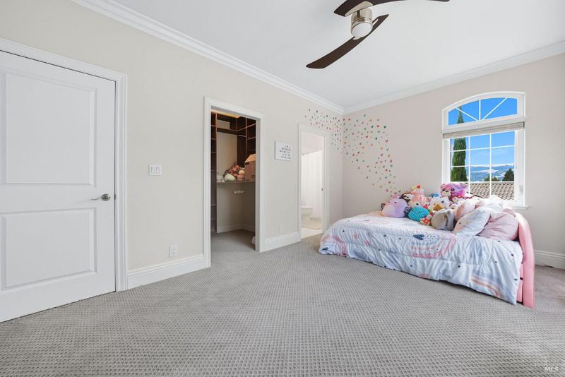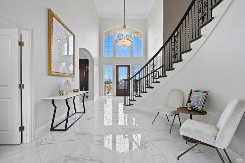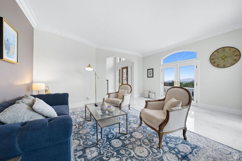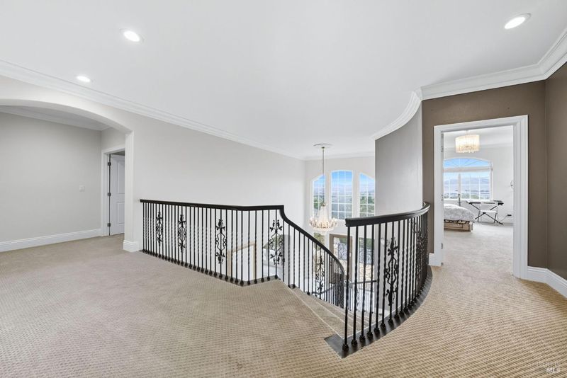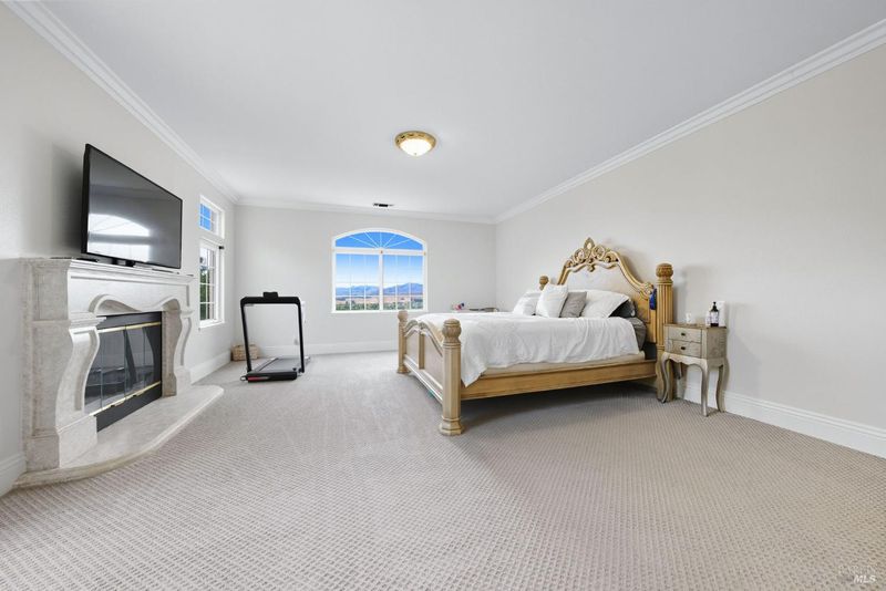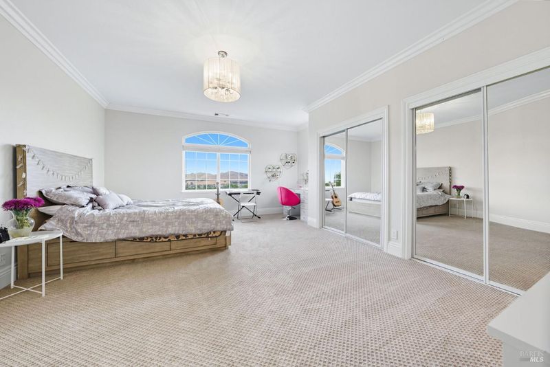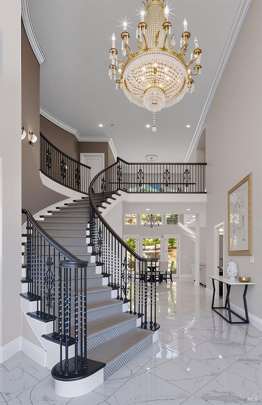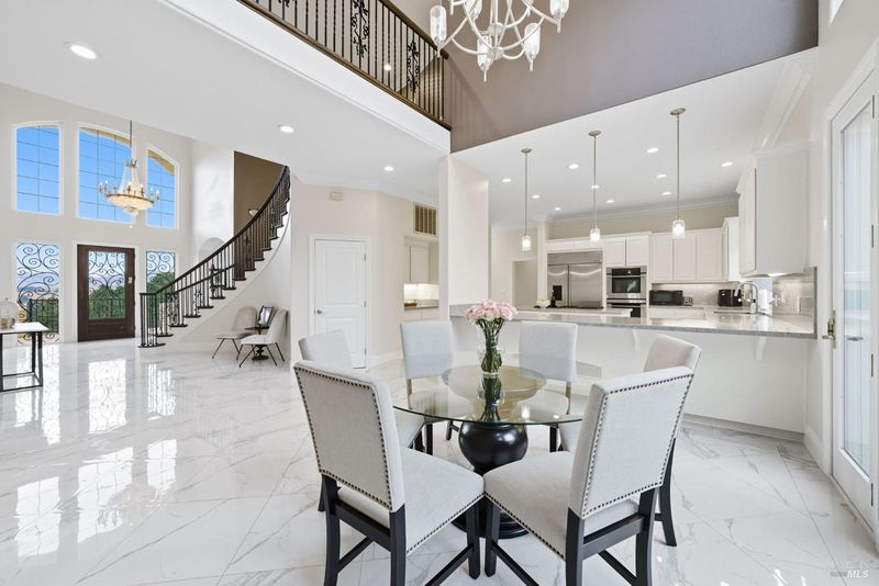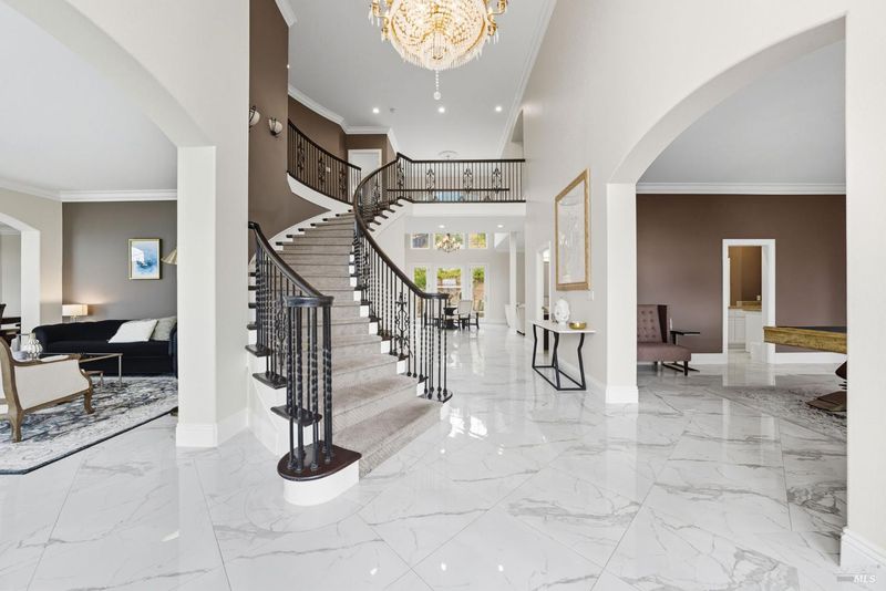 Exquisite KING of the hill home w- breathtaking panoramic views in the prestigious gated community of Eastridge. 4BD | 5BA. No rear neighbors- just majestic oaks, your own picturesque vineyard, and a resort-style pool and spa. Grand foyer with sweeping spiral staircase & soaring ceiling greets you as you walk through the designer front door. The main level includes a bedroom and a bath. Spacious chef's dream kitchen w-top of the line stainless steel appliances & a walk-in pantry. Luxurious primary suite boasts a spa-like bath, generous closet space w- a balcony. This 4,643 sqft custom beauty sits on .75 acres. Features include a sparkling heated swimming pool, waterfall, grotto, slide, and spa. Spacious 4-car garage with a driveway that curves up and around the back for easy access. Multiple fruit trees, owned solar panels, 3/fireplaces, wet bar and so much more! Enjoy stunning views from every window. This property is just moments from the Green Valley Country Club, Napa, local wineries, and all Bay Area commuter routes. Exceptional one-of-a-kind custom home. Make your dreams come true! Its pure bliss for entertainers.