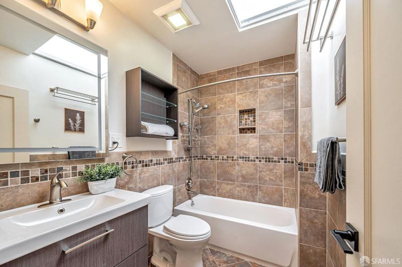 - Low-Flow Shower(s), Shower Stall(s), Skylight/Solar Tube, Tile, Tub w/Shower Over