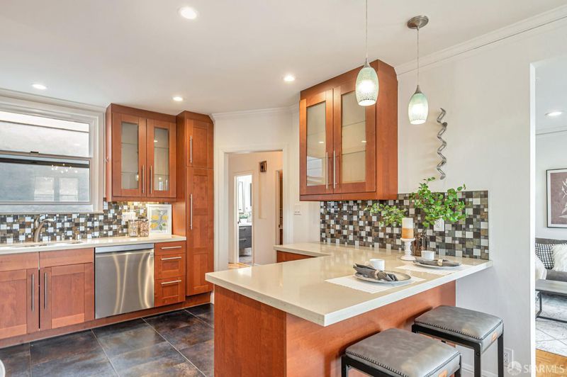 Gorgeous and move-in ready, this updated tunnel entrance home blends classic charm with modern upgrades. The spacious west-facing living room features an original fireplace and flows seamlessly into a formal dining room, while the remodeled kitchen (2013) offers both style and function. The top level includes three separate bedrooms at the rear of the home, two remodeled bathrooms, and direct access to the backyard from one of the bedrooms. Two interior stairways connect the main floor to the expansive ground level, which offers two-car tandem parking, abundant storage, a huge family room with wet bar, office, and an additional bath. The large, flat backyard is perfect for barbecues, gatherings, or simply relaxing outdoors. This home is loaded with upgrades and bonuses, including a fully owned solar power system, double-pane windows, added insulation, and new flooring throughout the ground floor level. Conveniently located near Quintara Street & 19th Avenue public transit, Taraval and Noriega Street shops and restaurants, and the Taraval Street MUNI lines, you'll also enjoy easy access to local parks and playgrounds such as Sunset Reservoir, McCoppin Square, Stern Grove, and Parkside Square. With space, style, and thoughtful improvements, this home is truly a rare find!