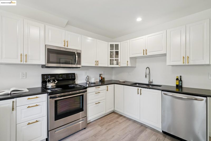 - Dishwasher, Electric Range, Refrigerator, Gas Water Heater, Stone Counters, Electric Range/Cooktop