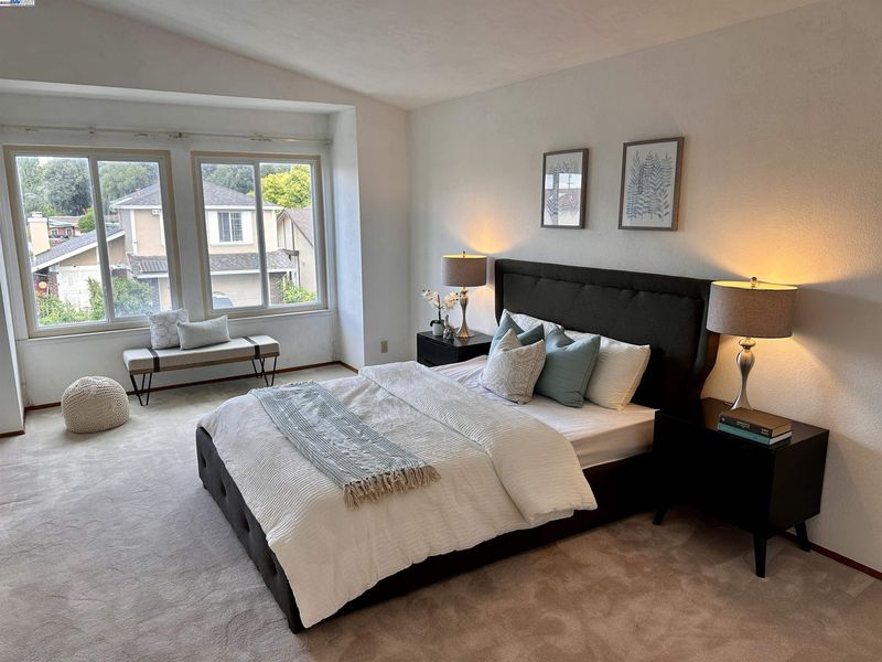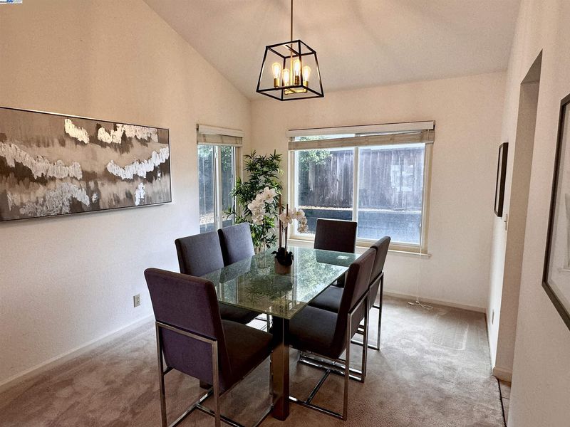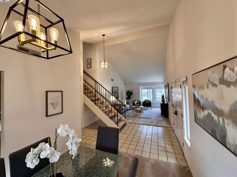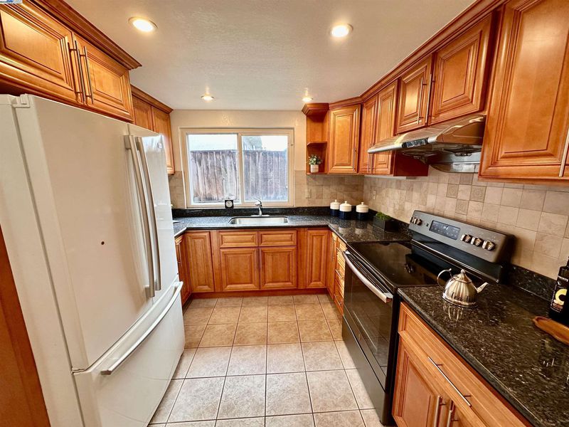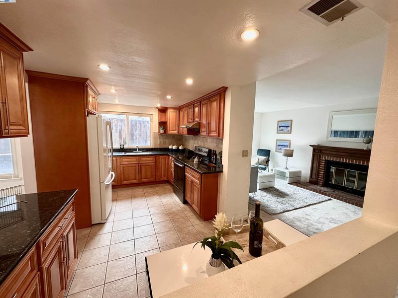 Beautiful 3-Bedroom, 2.5-Bath Home in a Quiet Neighborhood. Step into a welcoming living room with soaring vaulted ceilings that create a bright and open atmosphere. The cozy family room features a charming brick wood-burning fireplace with a convenient gas starter, plus a sliding glass door leading out to the back yard—perfect for relaxing or entertaining. The large, updated kitchen offers an abundance of cabinetry, granite countertops, a smooth-top stove with vent hood, dishwasher, and refrigerator, making it ideal for everyday living and cooking with ease. Upstairs, both bathrooms are enhanced with recessed lighting. Conveniently located near freeways, top schools, shopping, parks, and restaurants, this home combines comfort, style, and accessibility in one perfect package. 3D dollhouse: https://my.matterport.com/show/?m=AMQ4jHYVHry