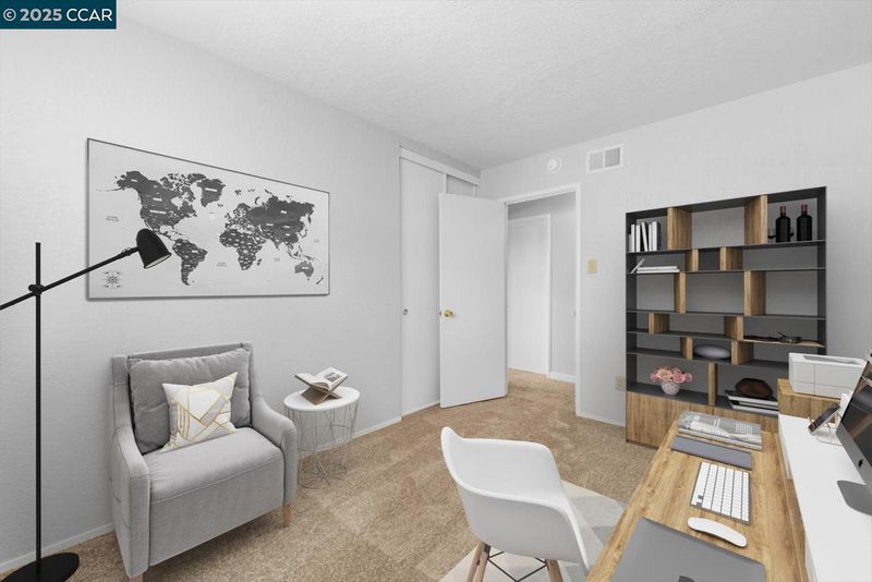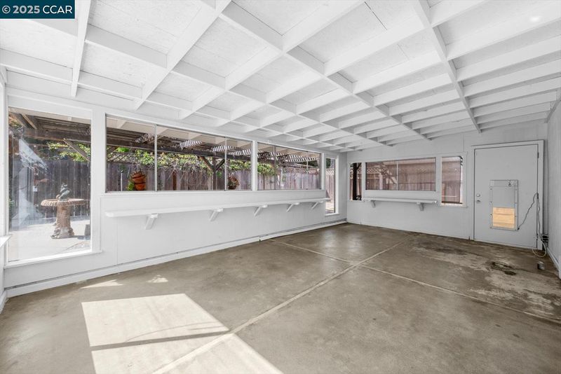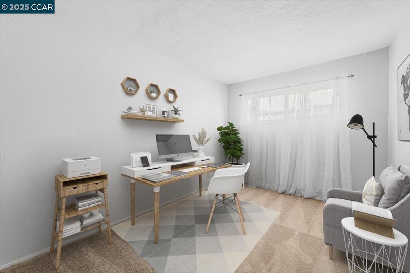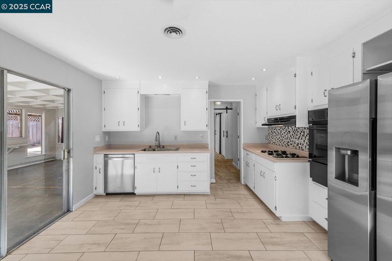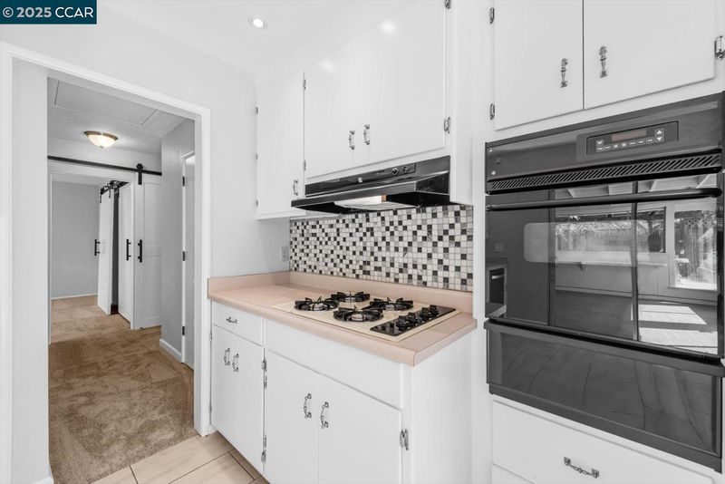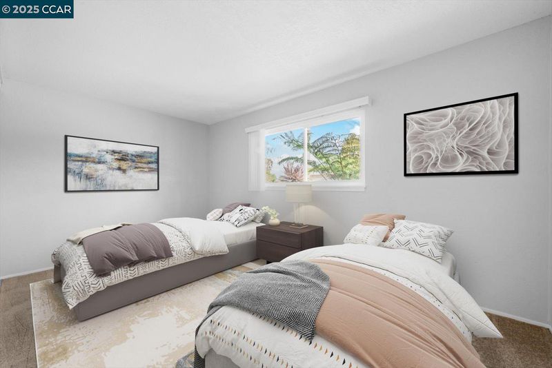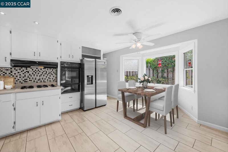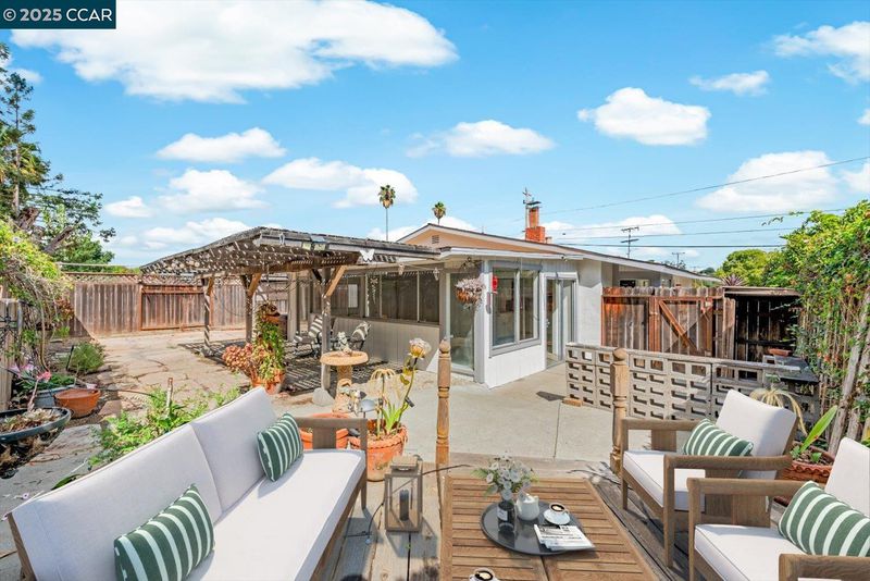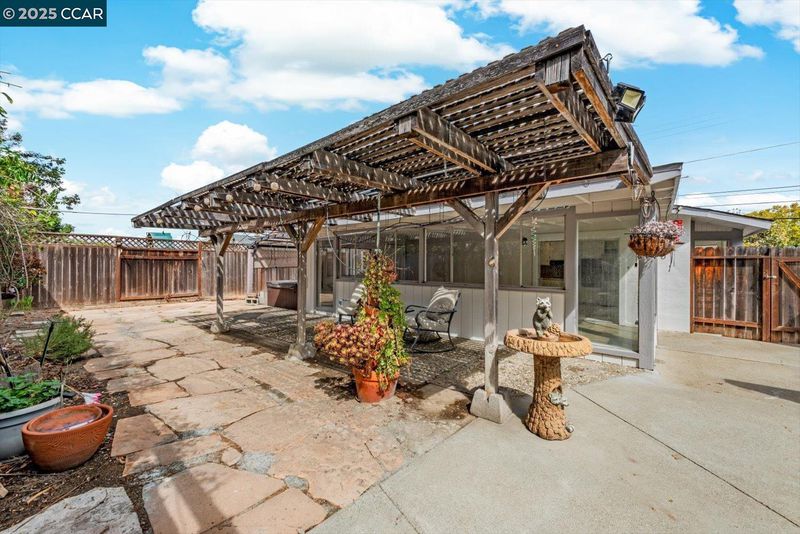 Welcome to 412 Tennent Avenue, Pinole. This four-bedroom, one-and-a-half-bath home offers 1,278 sq ft of comfortable living. The living room with wood-burning stove and stone surround flows into a bright eat-in kitchen with ample cabinetry, dining space, and refrigerator with ice maker. A sunroom at the back, filled with windows and backyard access, makes an ideal playroom, office, or hobby space, complete with dog door. New carpet runs throughout, with window blinds included. The primary bedroom features a walk-in closet and updated ensuite, while an updated half bath serves the rest of the home. Ceiling fans add comfort, and a hall pull-down ladder provides attic storage. The two-car garage offers built-in shelving, workbench, washer/dryer, and overhead storage. The low-maintenance backyard includes a covered patio and hot tub. A camera and doorbell system add security, while an additional workshop area beyond the fence provides space for storage, RV parking, or projects. Minutes from the shoreline, Bayfront Park, Fernandez Park, Pinole Creek trails, Senior Center, Historic Downtown, and San Pablo Avenue dining and shopping, with easy freeway access for commuting. Virtually staged.
