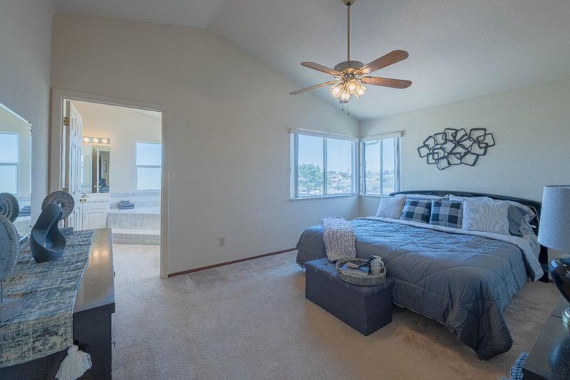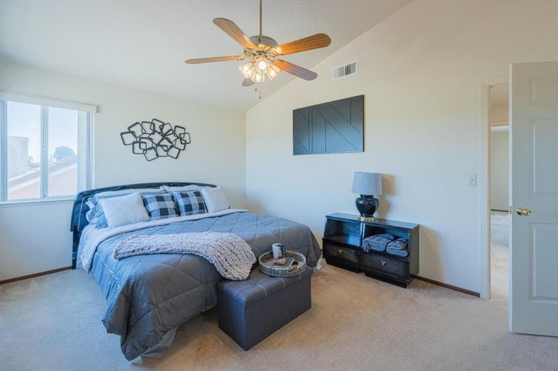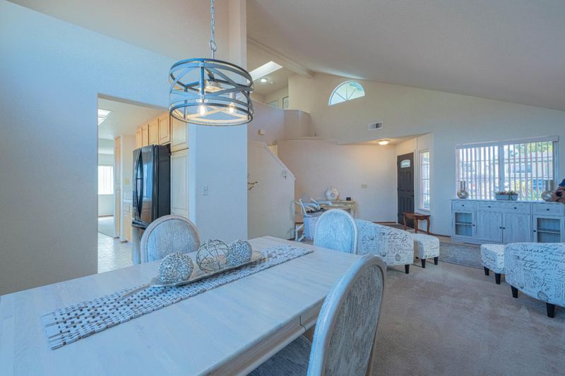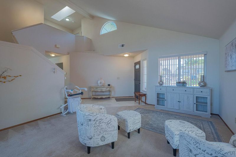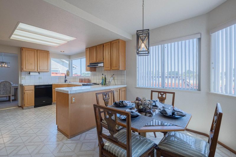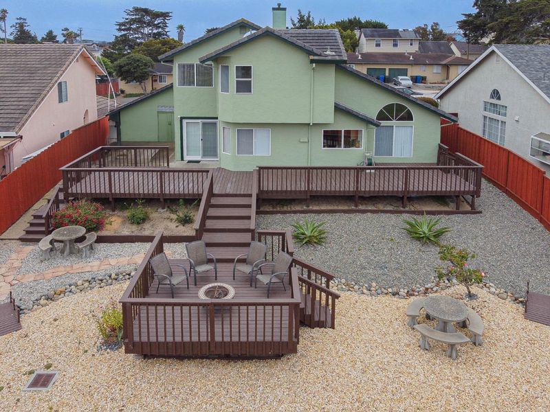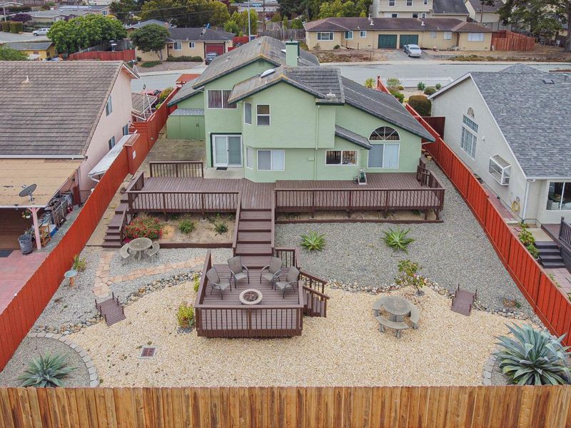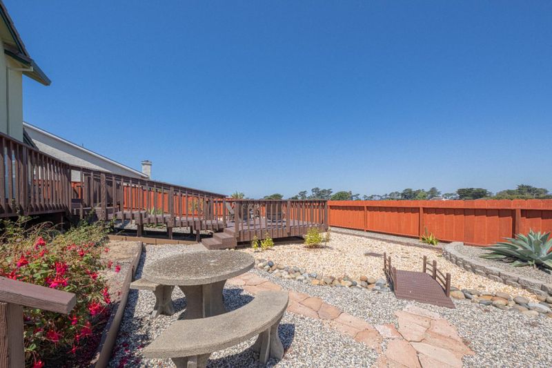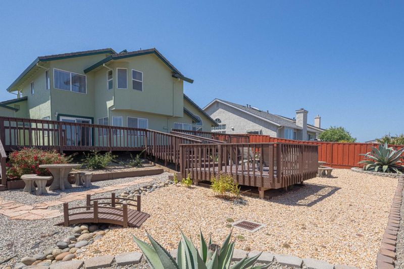 Welcome to this 2044 sq. ft., 3+-bedroom, 3-full bath home situated on a 7,587 sq. ft. lot in the beautiful city of Marina. The +bedroom-office is located on the first floor next to a full bathroom. This home boasts an oversized kitchen with tons of cabinets, extended counters, and a large garden window that overlooks the professionally designed and landscaped backyard. Enjoy meals in the breakfast nook or formal dining area. The spacious family room provides a cozy fireplace insert ideal for relaxing evenings. Key amenities include high ceilings, skylights, a walk-in closet, and an electric-powered stair chair. The laundry area is conveniently located indoors and comes with a washer and dryer. The primary bedroom suite comes with an extended walk-in closet and a huge soaking tub. The front and backyards, along with the extensive decking, are tastefully designed with water-wise landscaping. Just minutes from Marina State Beach, the Monterey Peninsula, and Hwy 1.