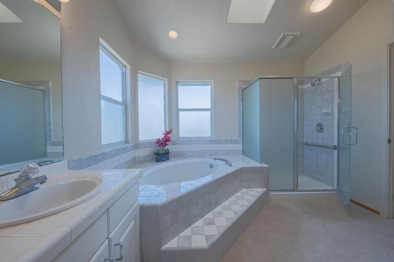 - Double Sinks, Full on Ground Floor, Oversized Tub, Primary - Oversized Tub, Primary - Stall Shower(s), Shower over Tub - 1, Stall Shower