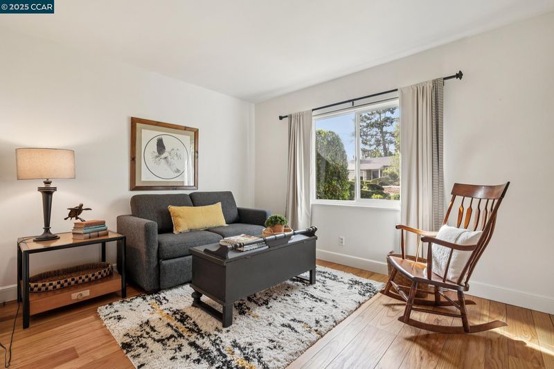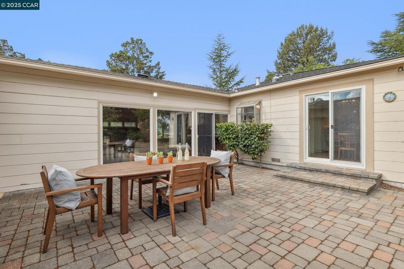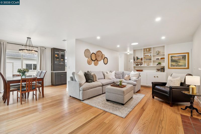 Rare opportunity awaits in one of Glorietta’s most coveted streets. First time in 60 years, this traditional single-level rancher sits on .53AC flat lot w stunning views of Mt. Diablo. Combining classic charm w thoughtful updates, the home offers 1,805± SF of living space, 3 generous bedrooms w ample closets, & 2 beautifully updated bathrooms with timeless finishes. Open-concept living & dining areas are anchored by brick fireplace & custom built-ins, while picture windows & glass sliders invite natural light & seamless access to the backyard. Remodeled kitchen w chic blue cabinetry, crisp white counters, & brass accents flows into spacious family room, where large windows & sliding doors open directly to a lovely patio—an ideal extension of California’s coveted indoor-outdoor lifestyle. Additional highlights include:dedicated laundry room w sauna & garden access. Outdoors w large flat backyard provides endless possibilities: private retreat for entertaining & play, gardener’s haven, or blank canvas for future expansion. Nestled in peaceful private setting & minutes from town, BART, & top-rated schools, walkable to Glorietta Elementary. With iprime location, usable land, & timeless style, home presents immediate comfort & extraordinary potential to create your dream home.