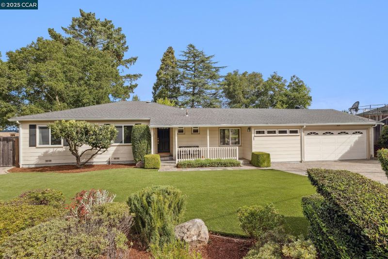 Rare opportunity awaits in one of Glorietta’s most coveted streets. First time in 60 years, this traditional single-level rancher sits on .53AC flat lot w stunning views of Mt. Diablo. Combining classic charm w thoughtful updates, the home offers 1,805± SF of living space, 3 generous bedrooms w ample closets, & 2 beautifully updated bathrooms with timeless finishes. Open-concept living & dining areas are anchored by wood-burning fireplace & custom built-ins, while picture windows & glass sliders invite natural light & seamless access to the backyard. Remodeled kitchen w chic blue cabinetry, crisp white counters, & brass accents flows into spacious family room, where large windows & sliding doors open directly to a lovely patio—an ideal extension of California’s coveted indoor-outdoor lifestyle. Additional highlights include:dedicated laundry room w sauna & garden access. Outdoors w large flat backyard provides endless possibilities: private retreat for entertaining & play, gardener’s haven, or blank canvas