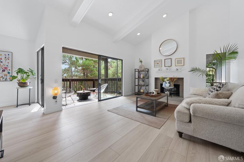 Exquisite top-floor end unit in San Carlos with pool views! This beautifully remodeled 3-bedroom, 2-bath condo offers the feeling of a woodland retreat with all the comforts of modern living. The light-filled living room features vaulted ceilings and a cozy fireplace, while the open floor plan is anchored by a modern kitchen with expanded pantry and premium appliances. The spa-inspired primary suite includes new counters, vanities, and premium fixtures, with a generous attic above the closet for extra storage. Throughout the home, new luxury vinyl plank flooring and plush carpeting create a refined atmosphere. Community amenities include swimming pools, tennis courts, and a clubhouse. Ideally located minutes from Crestview Park with playgrounds and sports courts, as well as downtown San Carlos, top-rated schools, shopping, dining, and hiking. A rare opportunity to own a move-in ready home that blends views, style, and convenience in one.