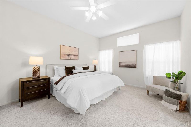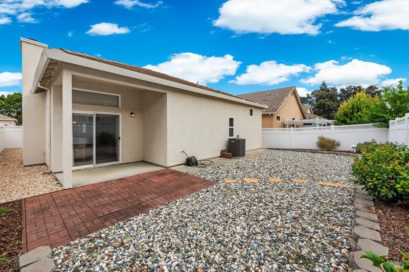 Tucked inside Vacaville's serene Spinnaker Cove, 412 Marvin Gardens is more than just a home, it's a quiet invitation to breathe a little easier. Imagine morning coffee in the sunny kitchen nook, your favorite mug in hand, as soft light pours in and the day begins at your own pace. Outside, the backyard has been transformed into a low maintenance haven designed for weekend lounging or light gardening, giving you space to unwind without the upkeep. Inside, vaulted ceilings and generous living spaces set the tone for relaxed, everyday living. Whether you're hosting family or enjoying a quiet evening, this home adapts beautifully to every season. With the HOA handling front yard landscaping and gate security, you're free to spend more time on what matters: connection, rest, and the lifestyle you've been waiting for. Located in one of Vacaville's most desirable 55 plus communities, close to shopping, dining, and healthcare, this is your chance to make every day feel a little more like home.
