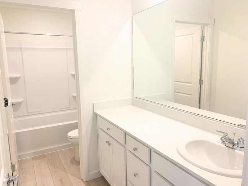 The Malibu floorplan offers a harmonious blend of space and functionality across its two stories. On the first floor, an inviting open layout seamlessly connects the kitchen, family room, and dining area, creating a fluid living space ideal for both entertaining and everyday living. The kitchen features a generous walk-in pantry, ensuring ample storage for culinary needs, while a convenient half bath adds practicality. Ascending to the second floor, residents will find all four bedrooms, including a master suite that exudes comfort with its expansive dimensions. The master bath complements the luxurious feel with a dual sink vanity and a modern step-in shower. Additionally, a spacious laundry room enhances the home's functionality, and the secondary bathroom is thoughtfully designed with a large vanity and a versatile tub/shower combination, catering to both relaxation and convenience.