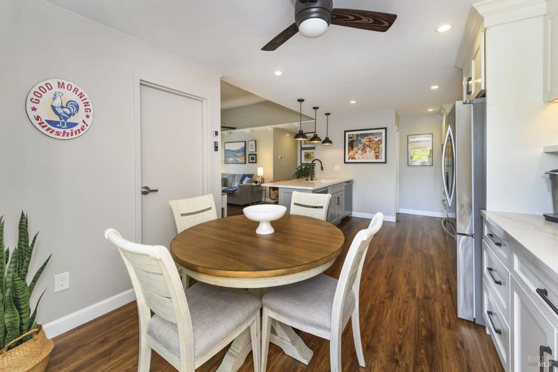 Meticulously updated, this single-level home in Petaluma's coveted Morningstar neighborhood is move-in ready and filled with modern charm. Set on a spacious 5,500sf corner lot, the home features 3 bedrooms, 2 bathrooms, and 1,086sf of thoughtfully designed living space. Major upgrades include rooftop solar with a Tesla backup battery, a heat pump, a tankless water heater, central AC, and windows. The contemporary kitchen shines with white quartz countertops, a dedicated coffee bar, subway tile backsplash, shaker-style cabinetry, and stainless-steel appliances, including a 6-burner ZLine range with hood, LG refrigerator, Bosch dishwasher, and ZLine microwave/convection oven. Designer plank flooring flows throughout, and an artisan fireplace with custom mantel and built-ins anchors the inviting living room. Outdoors, enjoy sun-filled front gardens, a stylish al fresco dining deck, turf lawn, and planter beds ideal for entertaining or relaxing weekends at home. Morningstar is one of Petaluma's most desirable communities, offering access to a neighborhood pool, spa, tennis courts, greenbelt, and park. Conveniently located near scenic trails, Leghorn Park, top-rated schools, shopping, and dining. 1702 Northstar Drive reflects exceptional pride of ownership and is ready to welcome you home.