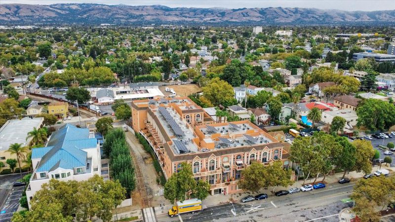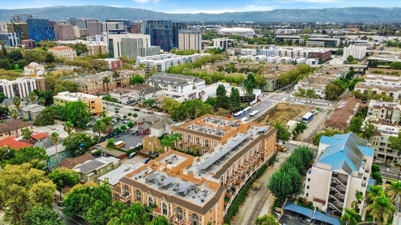 This elegant loft-style home combines the openness of modern loft living with the privacy of a traditional bedroom, a guest room or home office, and an additional open loft space. The home has a gourmet kitchen featuring granite countertops and honey-maple cabinets, complemented by wood floors, a wall of windows, and abundant natural light. An open floor plan with fresh paint and custom carpet flows seamlessly to a balcony overlooking the stunning pool and city views. This home perfectly balances urban living with a versatile design. Community amenities include a fitness center, pool, and spa. Gated entry and secure access provide peace of mind, along with an assigned, easily accessible parking space. Experience a lifestyle that blends urban luxury with everyday convenience in the heart of one of Silicon Valley's fastest-growing communities. Enjoy spacious living, all within walking distance to shopping, dining, San Pedro Market, the Farmers Market, entertainment, VTA, Light Rail, Caltrain, and the airport.
