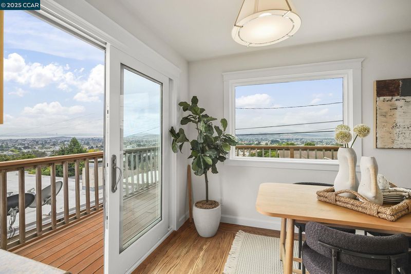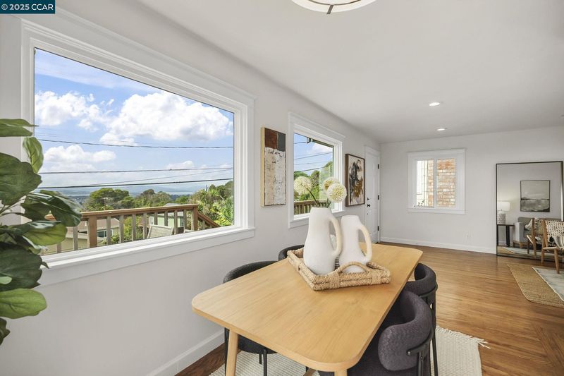 Jaw-dropping panoramic water and San Francisco city skyline views from this stylish 2-bedroom bungalow! Step inside and you’ll instantly feel the vibe—natural light floods through big picture windows, highlighting the original hardwood floors, fresh paint, and sleek recessed lighting. The open-concept living and dining areas flow right into the modern, updated kitchen—perfect for dinner parties, game nights, or quick bites before heading out to explore. Wake up to sunshine in the two bright bedrooms and start your day in the updated bathroom. But the real magic happens outside—the wraparound front porch is the spot for your morning coffee, golden-hour cocktails, or late-night DoorDash with a view. The spacious backyard is a blank canvas waiting for your creativity: think string lights, a cozy fire pit, or even a raised veggie garden. Plus, there’s plenty of potential to expand if you need more space down the road. Just minutes to Alvarado Park and Wildcat Canyon for hiking, biking, and weekend adventures—this