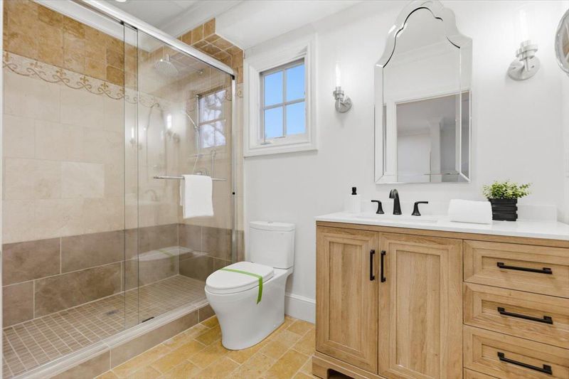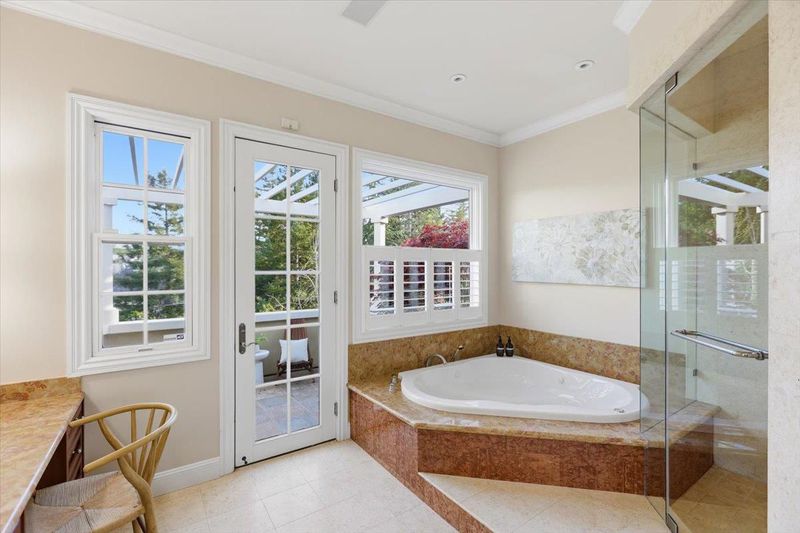 - Double Sinks, Full on Ground Floor, Pass Through, Primary - Oversized Tub, Primary - Stall Shower(s), Primary - Tub with Jets, Shower and Tub, Showers over Tubs - 2+, Split Bath, Stall Shower