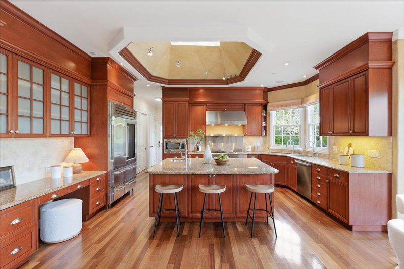 - Countertop - Granite, Dishwasher, Exhaust Fan, Garbage Disposal, Hood Over Range, Island, Island with Sink, Microwave, Oven - Double, Oven Range - Gas, Refrigerator, Wine Refrigerator