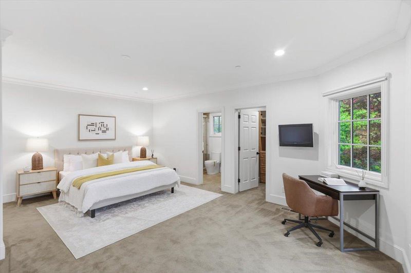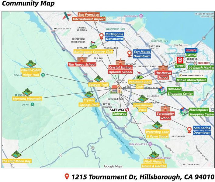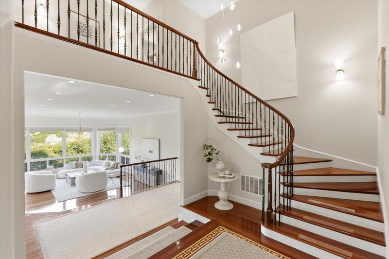 Rare estate in the prestigious Tobin Clark area of Hillsborough. Set on a private, resort-like lot with mature trees, layered outdoor spaces, and a private walking trail. Surrounded by top private schools, the home is thoughtfully laid out with 7 beds & 7.5 baths, along with formal living and dining rooms that connect to a spacious family room and kitchen. A group of four bedrooms are located together in one area of the home, making it especially practical for families with multiple children.The primary suite itself feels like a quiet retreat, featuring a spa-like bath and an expansive walk-in closet. A wood-paneled office provides a dedicated workspace, while the au pair quarters offer additional privacy for guests or extended household needs. A large open area is designed for everyday enjoyment like watching movies, playing games, or hosting. With a wet bar, full kitchenette, nearby bedroom and bath, and direct access to the outdoors, this space can also function as a self-contained living area. Outside, the grounds unfold with lawns, terraces, and an outdoor fireplace. Creating places to sit, walk, and host. Additional highlights include a rare 5-car garage and dual laundry areas. A home where space, privacy, and everyday living come together in a way that simply works.