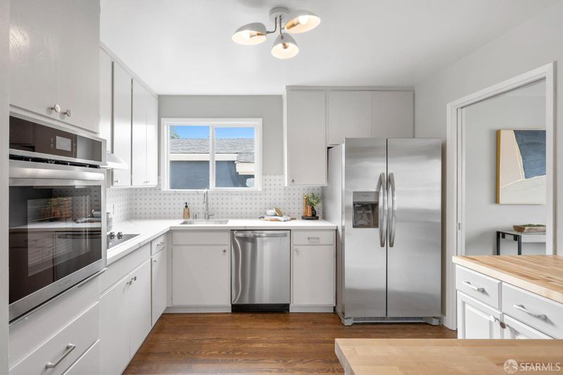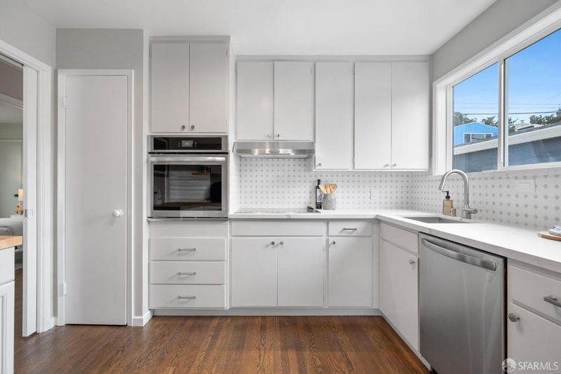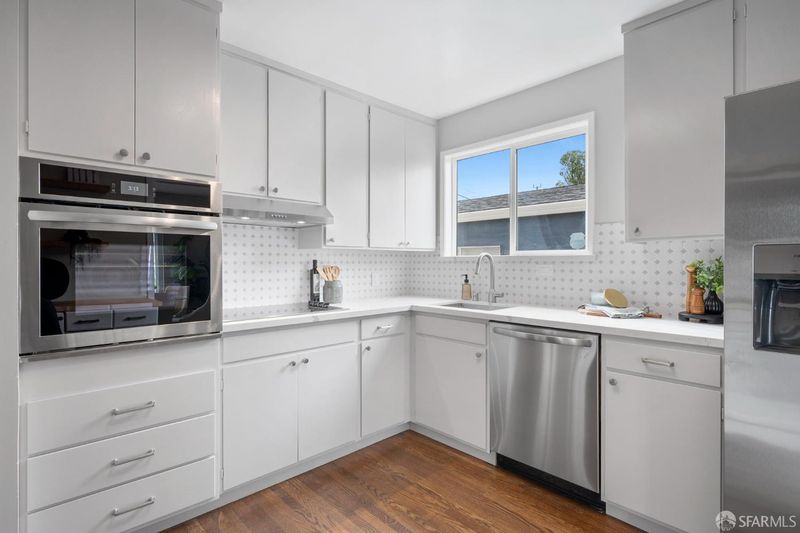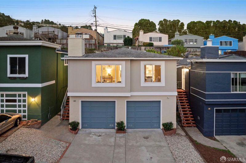 Nestled in Daly City's Southern Hills, this classic mid-century home offers a bright, functional floor plan designed for modern living. The main level features three spacious bedrooms and two bathrooms, one of which is a private primary suite. In the living room, large updated windows fill the space with natural light and frame views of the San Francisco Hills and Sutro Tower. An adjacent dining room and updated kitchen with all new appliances create a seamless flow for gatherings and everyday living. Step outside to enjoy a large backyard, ideal for entertaining, gardening, or relaxing in the sun. The expansive garage provides room for up to four cars, along with laundry hookups, ample storage, and the potential for future expansion. Ideally located just down the street from a neighborhood park and close to Safeway, local banks, the post office, Balboa Park BART Station, and Muni and SamTrans bus lines.