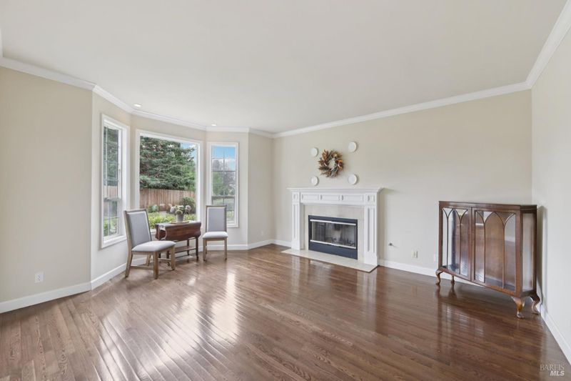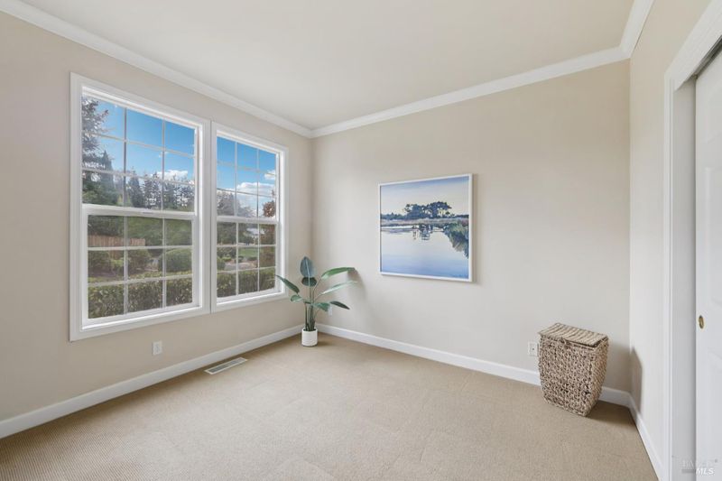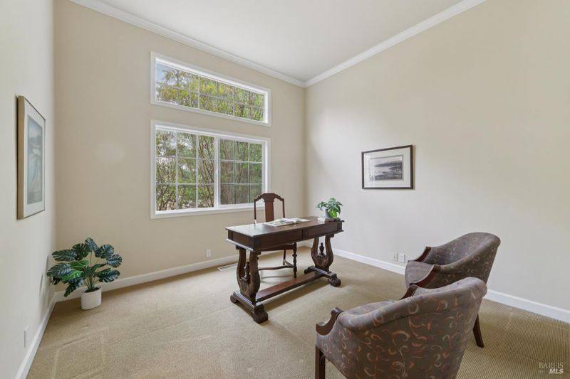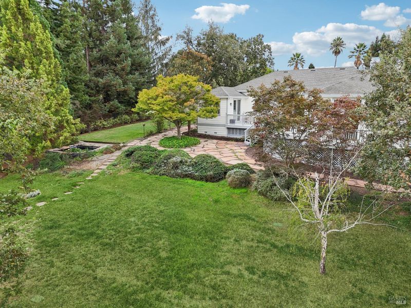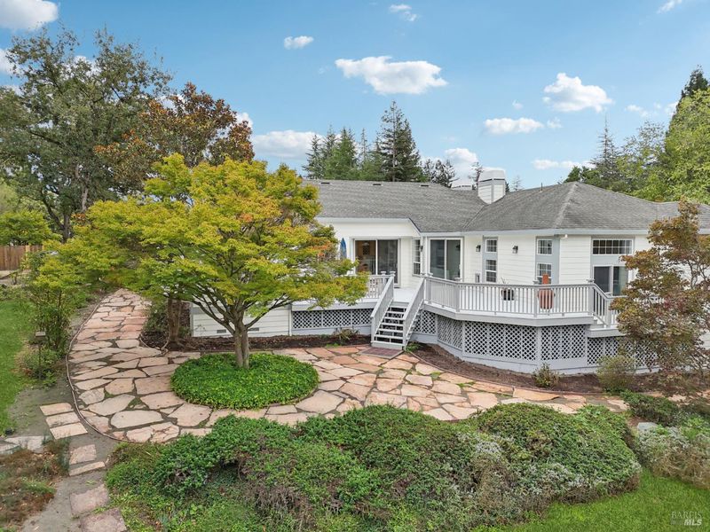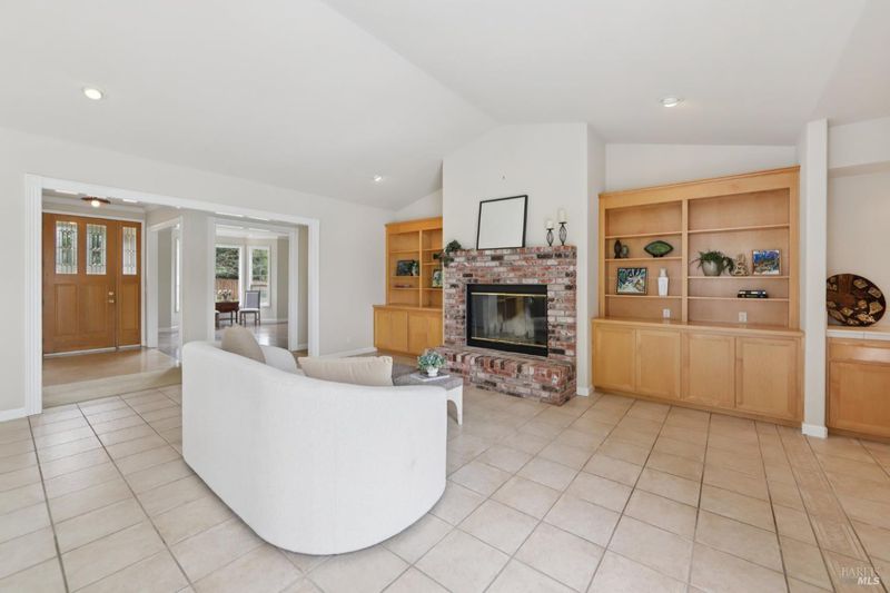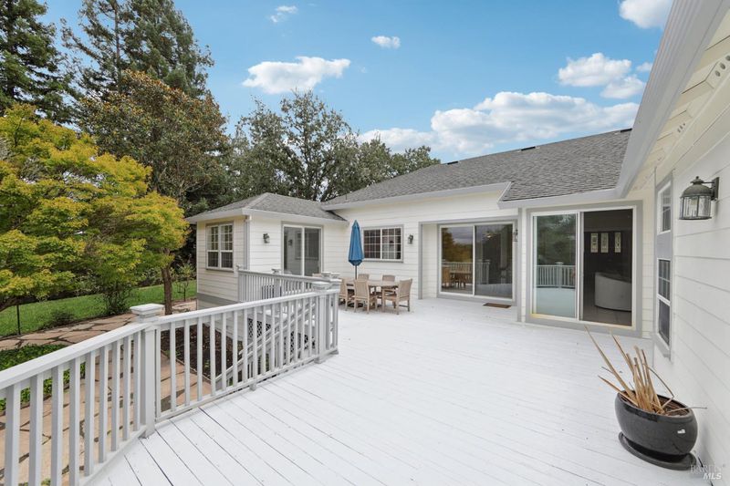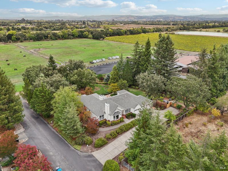 Peaceful serenity awaits in this single-level 4-bedroom, 3-bath residence within the coveted Greenview Estates, just moments from Santa Rosa Golf & Country Club. Set on 1.16 acres at the end of a quiet lane, the property offers 2,781 sq. ft. of living space, a three-car garage, and sweeping pastoral views. A grand driveway welcomes you with ample parking amid manicured landscaping and fruit trees. Step inside to formal living and dining rooms, dual fireplaces, a wet bar, and casual dining area. These create a fabulous environment for upscale entertaining. The kitchen features a center island, wine rack, and abundant cabinetry. The spacious primary suite boasts a huge walk-in closet, dual vanities, soaking tub, and separate shower. Multiple rooms, including the primary suite and family room, open to an expansive deck. It's truly an ideal spot for morning coffee or evening wine while taking in the tranquil views. Meandering flagstone paths lead to a pond, and later a fountain and raised garden beds, all framed by the stunning pasture beyond. Rarely do homes in this sought-after neighborhood become available, offering such potential to personalize its timeless design or reimagine it as your own sanctuary. This is a rare offering and an excellent opportunity.