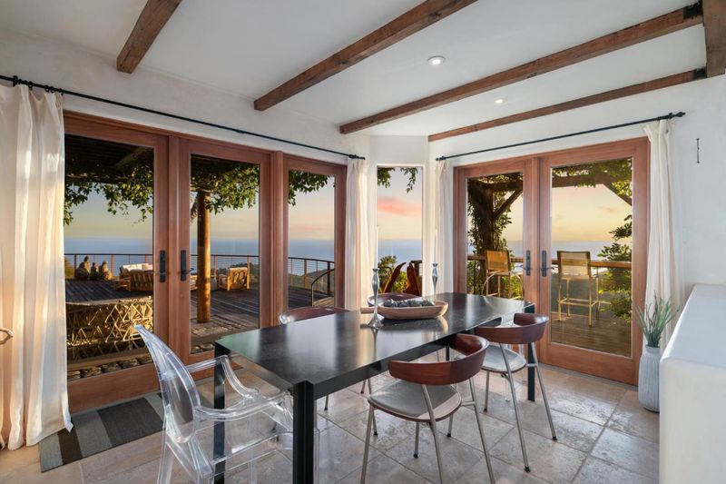 Welcome to 46250 Pfeiffer Ridge Road, an exquisite retreat nestled in the heart of Big Sur, California. This serene haven offers a luxurious and soulful escape with sweeping views of the Pacific Ocean. From the moment you arrive, youll be captivated by the panoramic vistas, complemented by an expansive wraparound deck, charming arbor, and a solar-heated pool. The main 1,700 square foot residence features three bedrooms and two beautifully appointed bathrooms, blending comfort with understated sophistication. Wander down one of the sculpted steel paths to discover the private two-bedroom whimsical 550 square foot guest house that is perfect for visitors, infused with the unique charm of Big Sur. This rare opportunity invites you to own a piece of Big Surs breathtaking natural beauty.