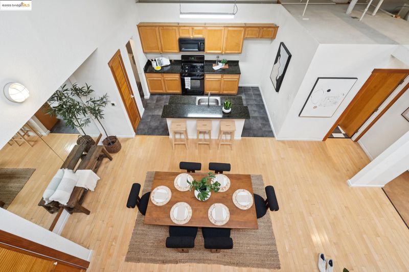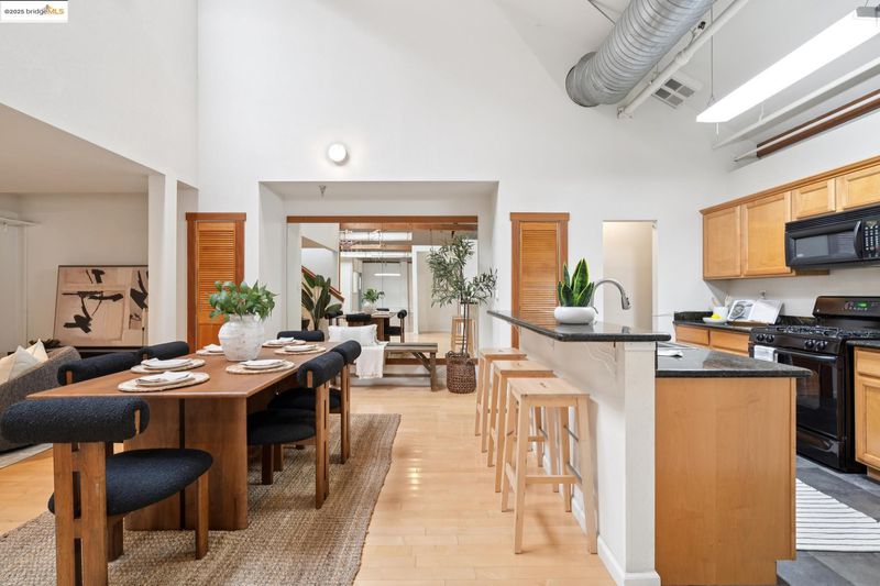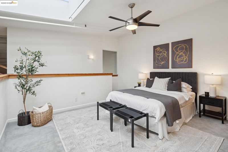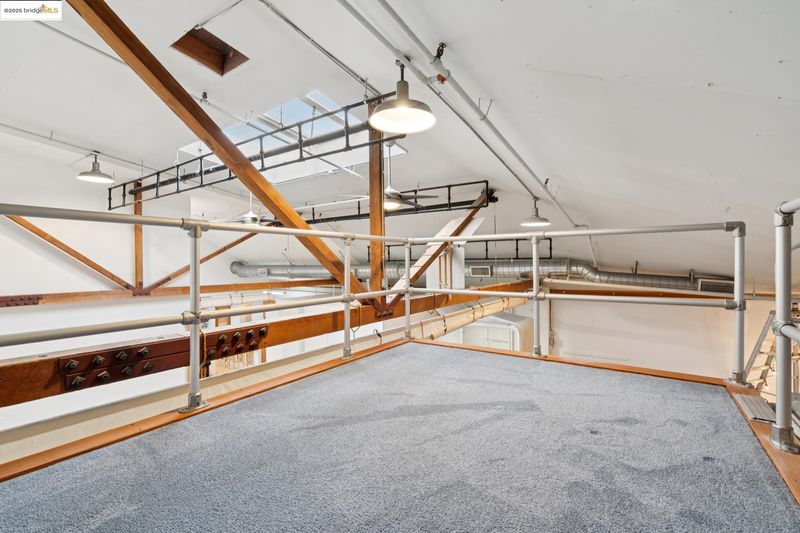 Extraordinary live-work loft featuring over 2,400 sq ft of creative space. The floor plan is intelligently divided into two distinct areas: ~1/3 is living (kitchen, dining/ living, bath and loft/bedroom) and ~2/3 is an open workspace. Workspace can be divided easily into more than one workspace if desired. Amenities include a photographic darkroom, sound-absorbing work pod, and stand-alone office with usable “roof top”. High ceilings dotted with skylights provide gorgeous natural light from above, and exposed vents reinforce a modern-industrial feel. Rare feature: working conveyor belt (shared with one neighbor) can transport items from ground level directly to the loft. Free community laundry, plus hook ups in unit. Easy access to 880 fwy, Lake Merritt or Jack London Square, and less than 1 mile to Brooklyn Basin / waterfront. For makers, people running a home office, or folks who simply need space to think differently - this live-work loft can be considered their personal headquarters.