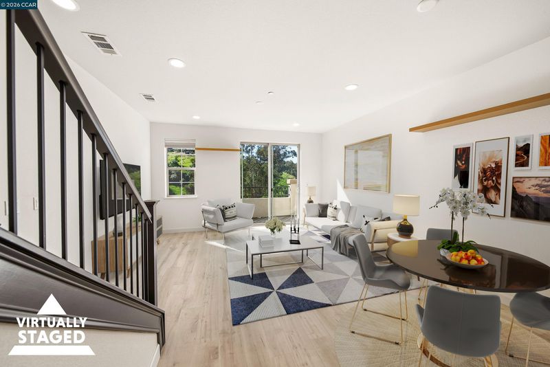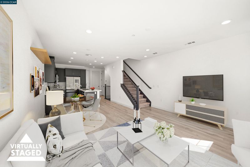Discover modern living in this 2022-built 3BD/3BA townhome offering 1,368 sq ft of thoughtfully designed space across a functional multi-level layout. Located just steps from a neighborhood playground, this home combines comfort and convenience. The open-concept main level features a bright living and dining area that flows into the kitchen, complete with soft-close cabinetry and all appliances included. Customizable refrigerator panels offer flexibility in design. Two wood shelves in the living area can be adjusted or removed. Bedrooms are well proportioned, including a primary suite with a sit-down shower. Additional features include a tankless water heater, pre-wiring for overhead lighting and ceiling fans, and an attached garage with potential for electric vehicle charging. Enjoy a private balcony with a view and low maintenance outdoor space supported by a sprinkler system. Conveniently located near shopping, dining, grocery stores, a movie theater, and major commute routes.